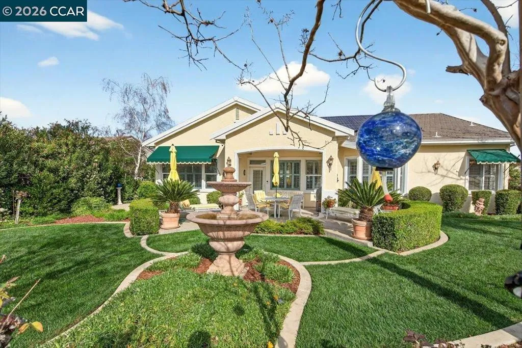 Uniquely Crafted Corner Lot Oasis! Introducing the Shining Star in Summerset II, a premier 55+ gated community! This approx 2,222 SF house features 3 beds & 2.5 baths on a showstopping 1/4 acre corner lot. The chef's kitchen boasts a Viking gas range, Viking wall oven, quartz countertops, an elegant breakfast bar, & Butler's pantry. Ruvati stainless steel sinks complement the space. Porcelain tile & hardwood flooring flow throughout the home, which includes spacious formal dining and living rooms, perfect for entertaining. The dual beds each have ensuite remodeled baths, & the primary suite offers double sinks, soaking tub, & a triple hung walk-in closet. Custom architectural detail include crown molding, columns, & wainscotting that accentuate the home's elegance. French doors, built-in cabinetry, & Sunburst Plantation Shutters are additional premium features. The home also offers a refaced 3-sided gas burning fireplace with media center, a newer HVAC system, ample storage, solar system, updated electrical, & a private, fully enclosed, meticulously manicured yard with mature trees, stamped concrete patio, & a fountain. An attached 2-car garage & golf car garage provide additional storage. This extraordinary home will check all the boxes! Open House by Appt, Sun, 3/29, 1-3P!