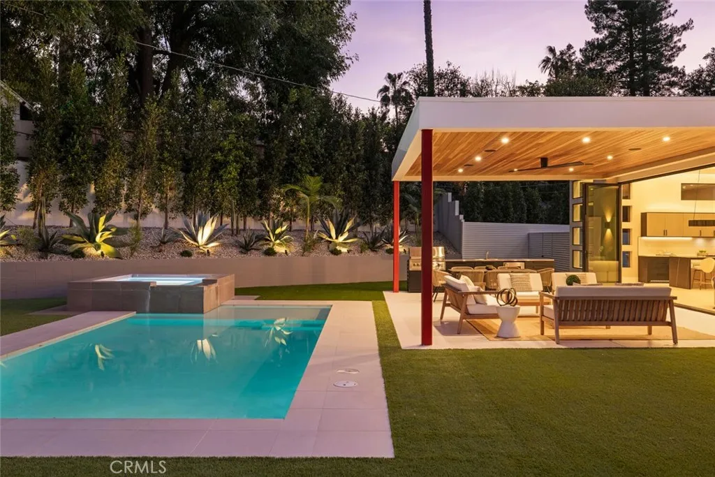 A rare opportunity to lease a fully reimagined single-story home on a flat lot in Woodland Hills! This stunning 3-bedroom, 3-bathroom residence offers 2500 square feet of meticulously redesigned living space, rebuilt from the ground up to deliver modern luxury at every turn. Soaring 13-foot ceilings throughout the home create an airy, expansive atmosphere throughout, while the seamless indoor-outdoor design blurs the line between interior comfort and alfresco living. The custom kitchen features built-in appliances and flows effortlessly into the entertaining spaces, making it ideal for hosting. Smart home technology elevates the experience with whole-home Hue lighting (inside and out), built-in sound, and electric blinds—adjust the ambiance with the touch of a button. Each of the three custom bathrooms showcases thoughtful design and premium finishes. Outside, the nearly 16,000-square-foot lot provides rare space and privacy. Enjoy resort-style amenities including a pool, spa, and built-in BBQ—perfect for year-round outdoor entertaining. This prime Woodland Hills locale places you so close to the Valley's new central hub of dining, shopping and entertainment that Warner Center has to offer, not to mention easy freeway access, less than 30 mins to Malibu and less than 1 mile from one of the Valley's highly accredited elementary schools, Woodland Hills Charter Elementary. Home is new and no one has lived in it before. This home truly has it all and is a must see!