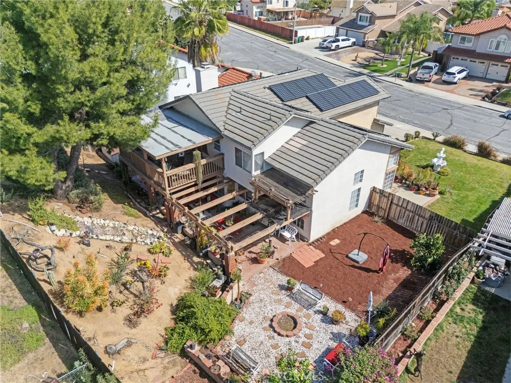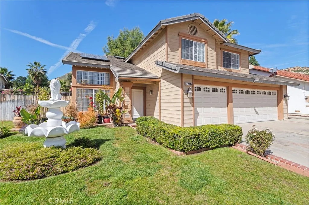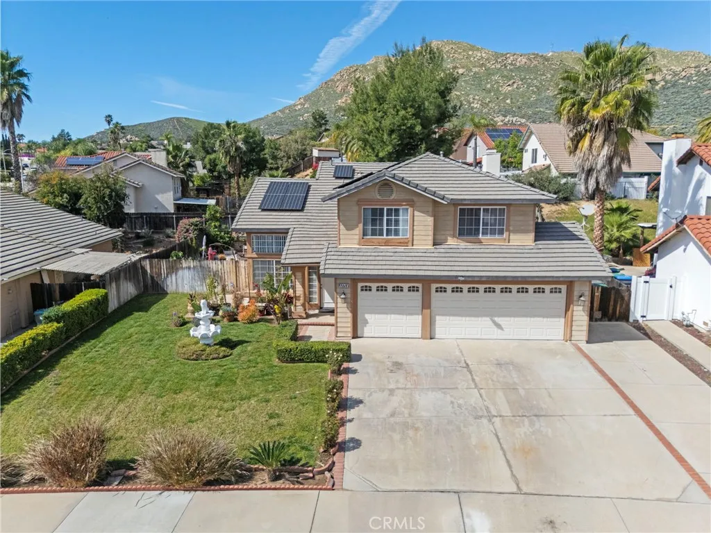 Located in the desirable North Moreno Valley area near the Riverside border, this two-story 4-bedroom, 2.5-bath home offers space, comfort, and scenic mountain views. All bedrooms are thoughtfully situated upstairs, including a spacious primary suite featuring a spa-inspired ensuite with a soaking tub and separate shower. The open floor plan is filled with natural light, and the kitchen flows seamlessly into the inviting family room with a cozy fireplace ideal for both everyday living and entertaining. Enjoy ample storage throughout, a rare three-car garage, and solar panels for added energy efficiency. Step outside to enjoy the outdoor space, perfect for relaxing or hosting gatherings. Conveniently located near the 60 Freeway, shopping centers, dining, and just minutes from Riverside, this home blends tranquility with commuter-friendly accessibility.