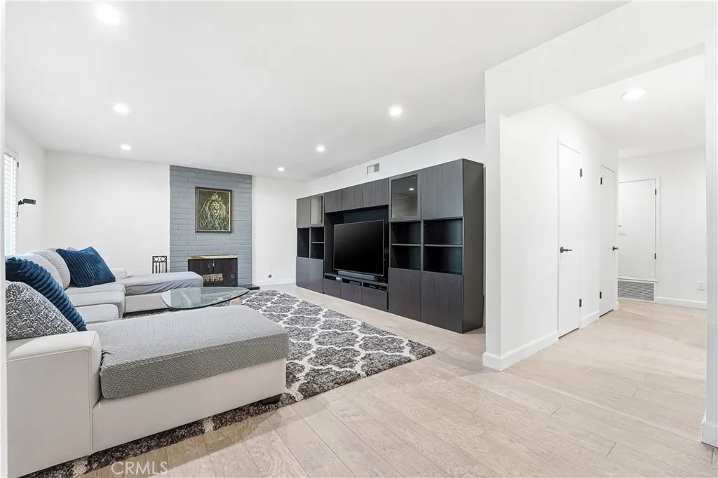 HEAVY REDUCTION IN PRICE BY $20,000. Modern Luxury Meets Single-Story Convenience in the Heart of Orange! Check out the photos!! Privacy galore. Looks and feels like an affordable single family home. One of the rarest 3 bedroom single story homes in OC. Step through the double doors into a bright, open living space that feels more like a single-family home than a condo. Natural light pours in through large windows and plantation shutters, highlighting the modern flooring and a striking floor-to-ceiling brick fireplace that anchors the living room. The layout flows seamlessly into a dedicated dining area with a contemporary chandelier and direct access to the private backyard patio. The kitchen sits at the center of the home, featuring warm wood cabinetry, white countertops, tile backsplash, gas cooktop, double ovens (most recently updated), and views out to the covered patio—perfect for indoor-outdoor living. Down the hall, the oversized primary suite offers true retreat vibes, with enough space for a king bed and sitting area or home office. Sliding doors open directly to the patio, and the walk-in closet includes custom organizers installed in 2025. The en-suite bathroom features dual sinks, updated lighting, tile flooring, and a walk-in shower with glass door. Recent major improvements include newer windows and sliders, a new AC condenser (2023), and full plumbing replacement approximately two years ago—providing peace of mind for years to come. The remodeled outdoor patio showcases ceramic stone pavers and landscaped planters, creating a private oasis ideal for entertaining or relaxing. HOA pays for water, trash and exterior maintenance. Located on a tree-lined quiet street near shopping and Shaffer Park, this home combines comfort, convenience, and lifestyle. Orange School Disctrict gives access to Villa Park High School.