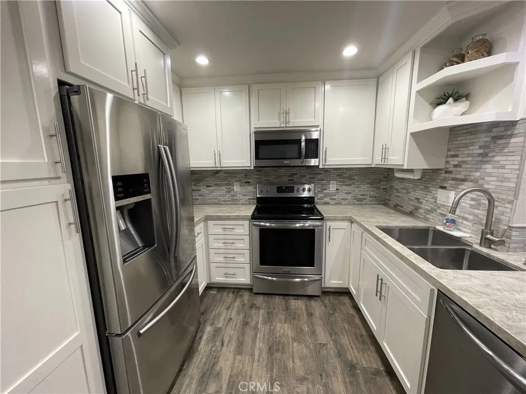 Welcome to this stunning 2-bedroom, 2-bathroom home located in a gated community in Huntington Beach. This condo offers a blend of comfort, style, and convenience. The interior features beautiful LVP flooring, recessed lighting, and a gas fireplace, adding a touch of warmth to the living space. The kitchen is a chef's dream with its quartz countertops and stainless steel appliances. The primary bedroom includes a walk-in closet. The bathrooms have been upgraded for a more modern look. The condo is nestled in a community with a beautiful greenbelt, offering a serene, picturesque environment. Experience the perfect blend of luxury and security in this Huntington Beach gated community.