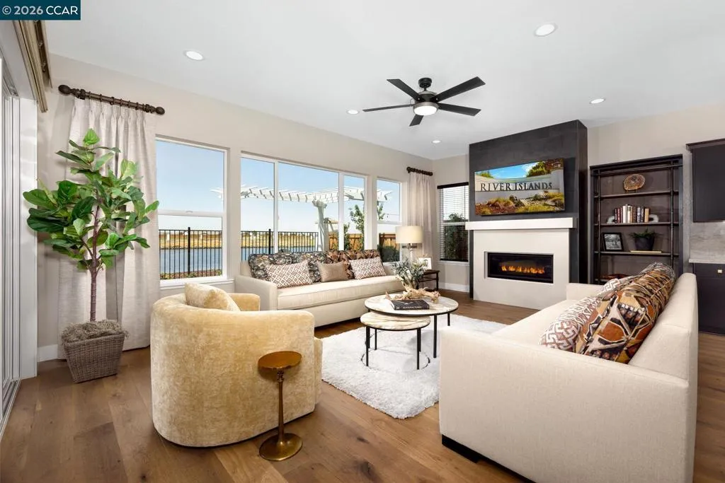 Brand new North East facing 5 bedroom home at Capri is ready for move-in to allow kids into the prestigious River Islands schools! Home has been highly upgraded with incredible finishes and designer upgrades. This exceptional luxury residence is situated with no rear neighbors for added privacy and offers a view deck from the Primary bedroom that has a slight view of the neighboring lake. Additionally, there is a 5th bedroom and full bath on the lower level- perfect for extended family or guests. Home also has a cook's kitchen with large center Island, plenty of cabinets, built-in stainless appliances and large outdoor covered California Room with comfortable backyard for your enjoyment just steps from the lake across the street. The upper level offers spacious bedrooms, laundry, shared bath, loft and sumptuous Primary suite with oversized shower, freestanding soaking tub, walk-in closet. SOLAR and SMART elements along are FREE. Don't delay!