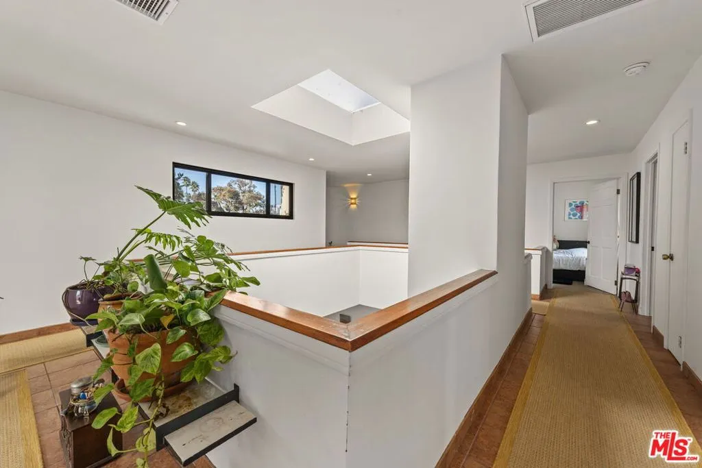 Tucked within a peaceful and highly coveted pocket of Santa Monica, this rare 4-bedroom, 3-bath townhouse lives like a single-family home. One of only tworesidences in the complex, it offers a lush outdoor patio, privacy, natural light, and the feeling of a detached single-family home. The home's inviting layout revolves arounda dramatic two-story living room with soaring ceilings, a central fireplace, and a skylight that floods the space with sunshine. Upstairs, the open circulation around the livingarea creates an airy, architectural sense of volume. The main level includes a bedroom with its own private terrace, a cheerful dining area with vibrant color accents, and awell-appointed kitchen that opens to the enchanting backyard. This serene and meticulously maintained outdoor space complete with a lemon tree, garden plantings, and alarge dining area is perfect for entertaining, al fresco dinners, or relaxing under twinkling string lights. Upstairs, the spacious primary suite features abundant light, a walk-incloset, and a recently remodeled bathroom showcasing colorful bohemian-chic tile, double vanity, soaking tub, and separate shower. Two additional bedrooms share amodern bathroom with bold red tile and a generous shower. Warm, welcoming, and full of charm, this home combines modern convenience with creative and eclecticcharacteroffering multiple private outdoor spaces, natural light from every direction, and the rare feel of a standalone home in the heart of Santa Monica. Located minutes from Water Garden and Colorado Garden Park, walking distance from Erewhon, within proximity to the beach, restaurants, markets, this charming property is truly in one ofLA's most iconic coastal neighborhoods.