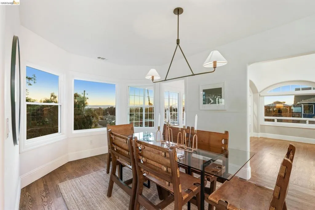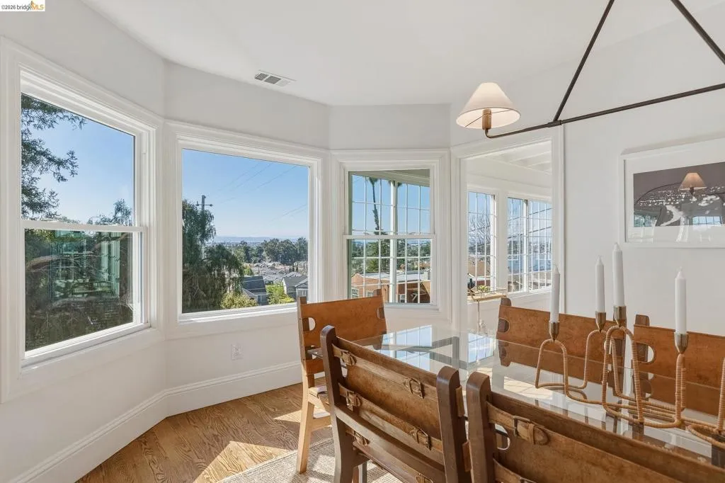 VIEWS! VIEWS! VIEWS! Welcome to your Oakland oasis! This updated home is a light-filled masterpiece, nestled in the sought-after Oak Knolls/ Golf Link neighborhood. Prepare to be swept away by the dramatic, open-concept floor plan and the meticulous designer finishes found throughout. From the moment you step inside, you are greeted by a spacious living room featuring refinished hardwood floors, magnificent arched high ceilings, and a cozy wood-burning fireplace. Large, strategically placed windows frame the breathtaking, unobstructed views of the San Francisco skyline. A view you can soak up even closer from the incredible sunroom, easily accessible from both the dining and living areas. Imagine ending every day with an outstanding sunset spectacle. The kitchen is finished with modern cabinetry, stainless-steel appliances, & striking quartz counters and backsplash. Making it as beautiful as it is functional. The primary suite with luxurious shower, another bedroom and one full bath finish the main level. The lower level offers 2 more bedrooms, a full bath & large storage area. Enjoy dining al fresco in the landscaped backyard. Upgrades in 2022 include, a new roof, HVAC, tankless water heater, new electrical and copper plumbing, and NEST thermostat.