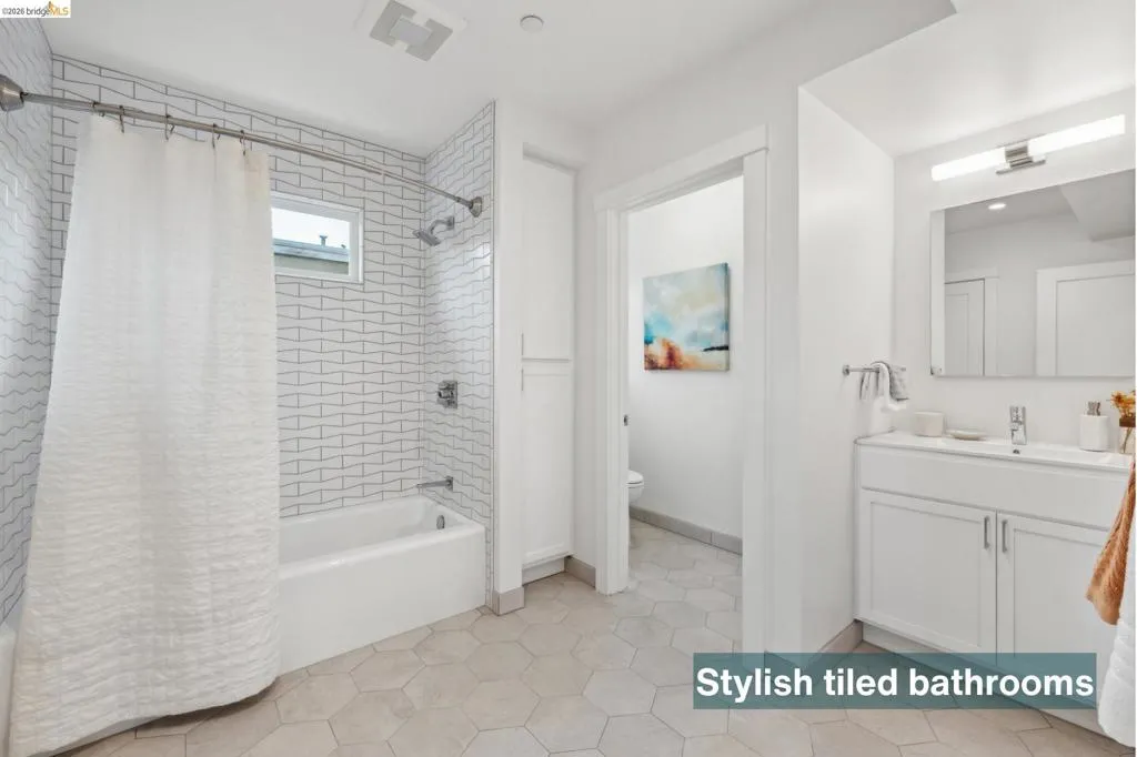 Welcome to 667 & 667A Alcatraz—a brand-new, modern home with a spacious main residence and a thoughtfully designed ADU below. Located on the Oakland/Berkeley border, this stunning ground-up construction features all-new electrical, plumbing, and sewer systems, ensuring a seamless, move-in-ready experience. Both units feature designer kitchens with high-end finishes, premium stainless steel appliances, and airy open layouts. Stylish tiled bathrooms, in-unit laundry, and sunlit, generously sized bedrooms enhance each space. The main unit, 667, spans the upper two floors with high ceilings, 4 well-appointed bedrooms, 2 full baths, plus a front office with elegant double French doors. The ground-floor ADU, 667A, offers a well-appointed 3-bedroom, 2-bath layout with a similarly open design and direct access to the rear patio—perfect for relaxation. The fully landscaped grounds require minimal upkeep, and the property includes a convenient off-street parking space and secure storage. A partial solar system is in place with expansion potential. Buyers also benefit from long-term builder, construction, and appliance warranties for additional peace of mind!