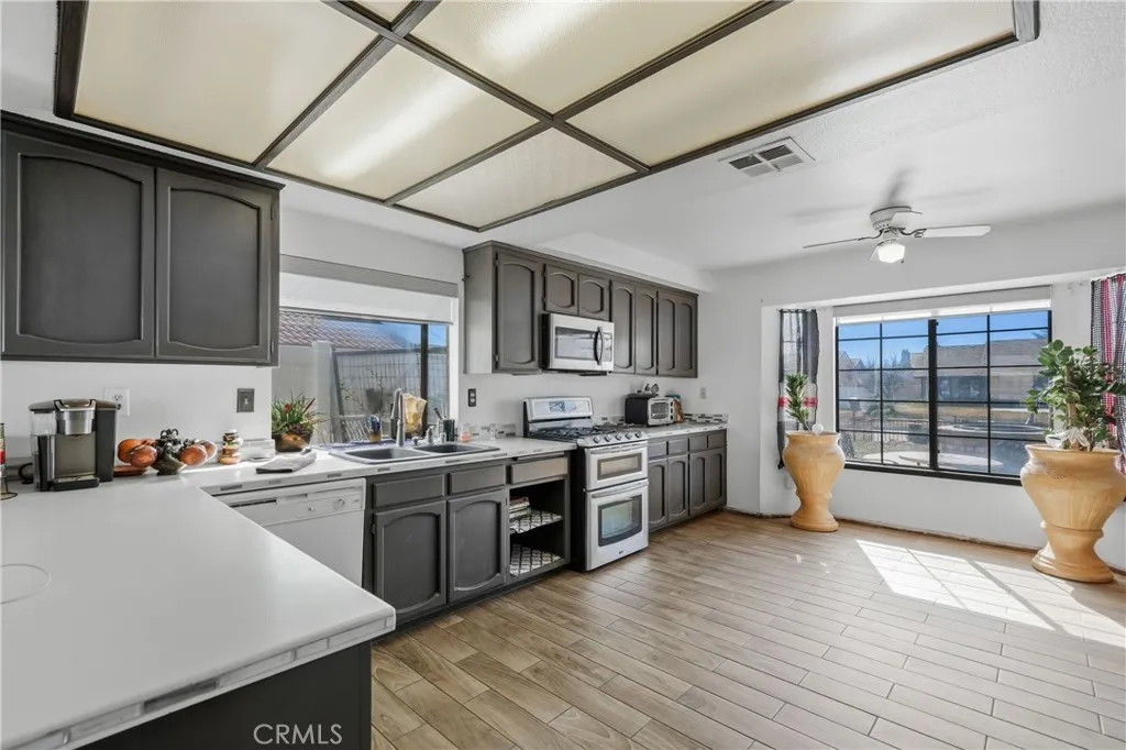 Welcome to this charming 3-bedroom, 2-bath single-story home in Hesperia. Featuring tile flooring throughout the main living areas, this home offers durability and easy maintenance. Major system upgrades include a recently updated furnace, A/C unit, and water heater for added comfort and efficiency plus an E/V charger. Step outside to a spacious backyard with a private swimming pool — perfect for entertaining, relaxing, and enjoying the High Desert lifestyle, the side yard has plenty of space for your RV and it features an RV cleanout as well. Located in a desirable neighborhood with public sewer access (no septic), this Hesperia pool home offers space, functionality, and incredible potential. Don’t miss this opportunity to make it your own!