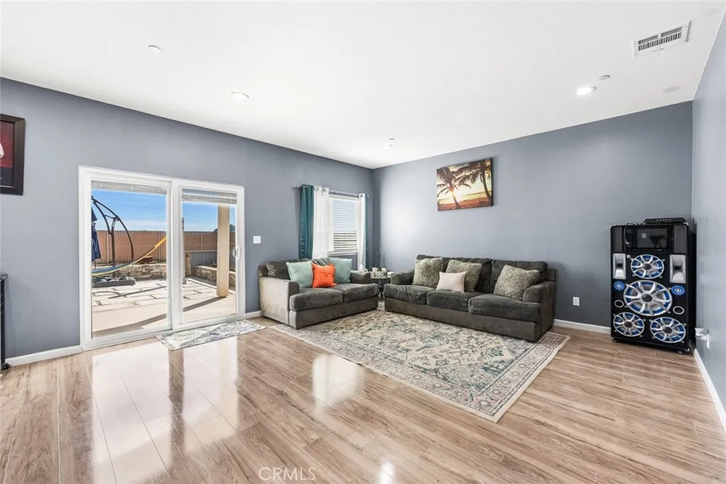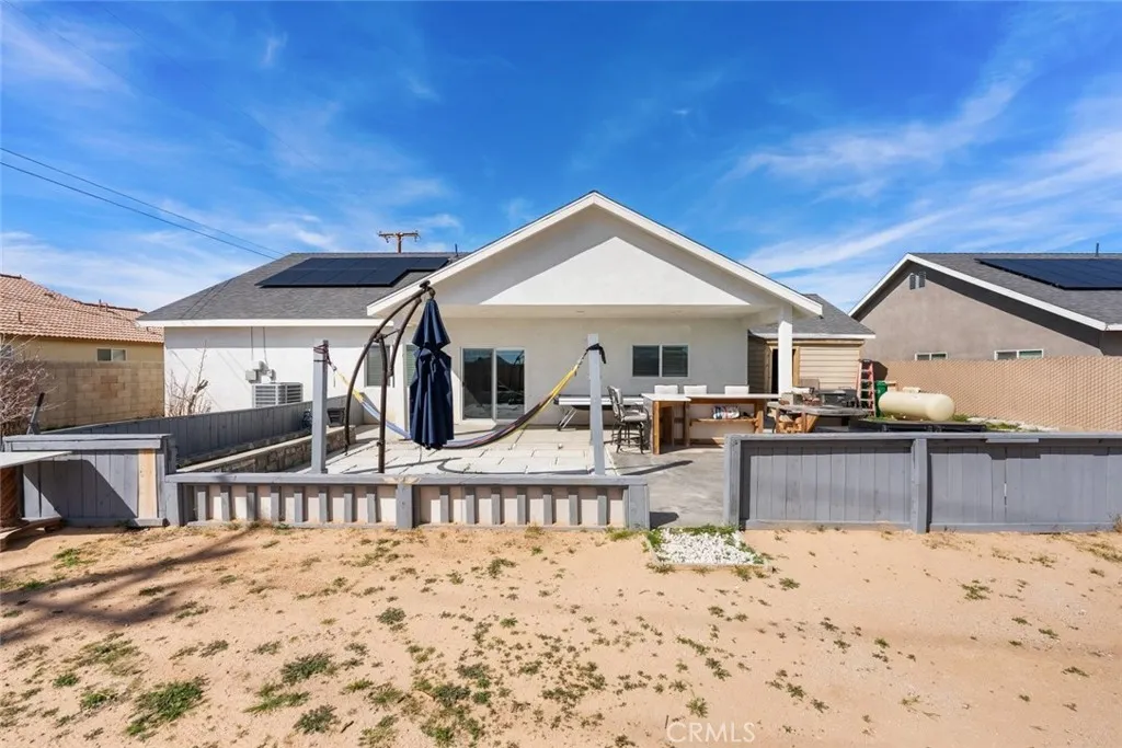 Welcome to this beautifully constructed 2023 residence located at 10588 Peach Avenue in California City. Offering 2,134 square feet of thoughtfully designed living space, this stunning home blends modern comfort with stylish finishes throughout. Inside, an expansive open floor plan filled with natural light creates an inviting atmosphere, ideal for both everyday living and entertaining. The heart of the home features a custom fireplace with an elegant marble backsplash, creating a warm yet sophisticated focal point. The spacious kitchen boasts quality flooring, a generous walk-in pantry, and seamless flow into the main living and dining areas. The property offers 4 bedrooms and 2.5 bathrooms per title, plus a versatile bonus room currently used as an additional bedroom, perfect for a home office, gym, guest space, or flex room to fit your lifestyle needs. Enjoy energy efficiency with fully paid solar, helping to reduce utility costs while embracing sustainable living. The attached two-car garage provides convenience and additional storage. The private backyard retreat is complete with a built-in BBQ, ideal for gatherings and outdoor entertaining year-round. This move-in ready home offers modern design, functionality, and comfort, all in one exceptional property.