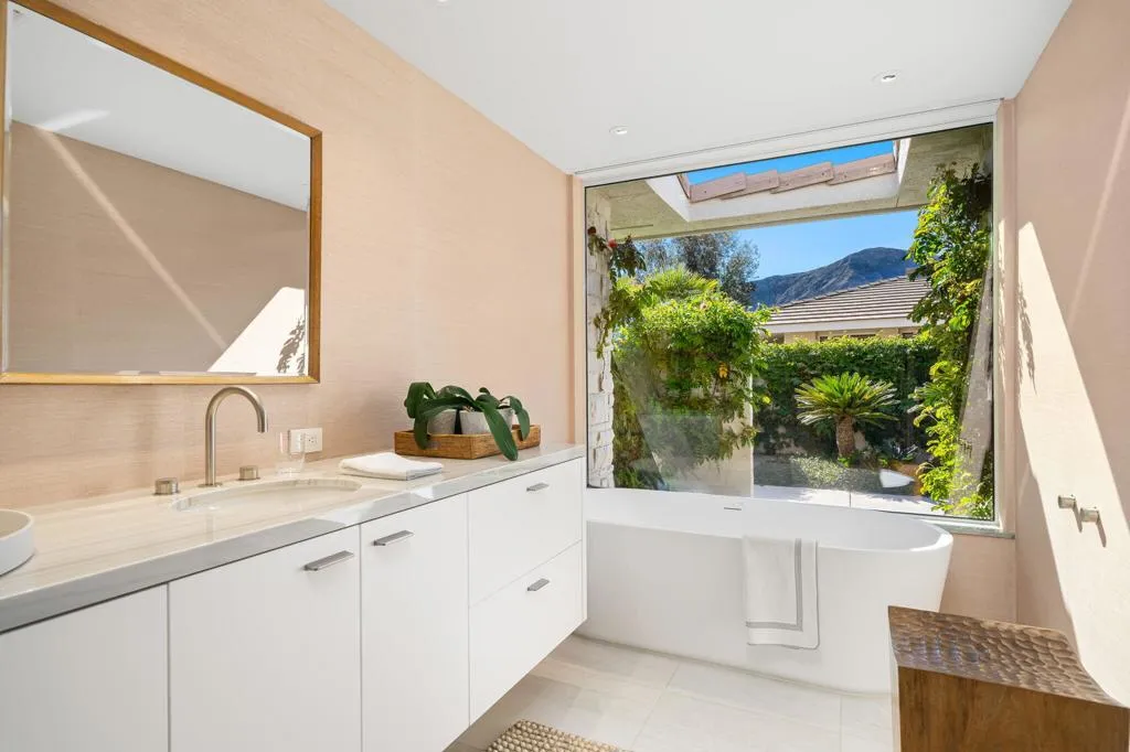 There are renovated homes--and then there are homes rebuilt with intention, quality, and permanence. 44 Fincher Way is a rare offering at Morningside Country Club: a 3-bedroom, 5-bath contemporary spanning nearly 5,000 square feet that feels virtually new while preserving the scale and prestige of this iconic Rancho Mirage community. Light-filled interiors showcase soaring ceilings, expansive living spaces, and clean architectural lines, with large-format flooring flowing throughout. Walls of glass frame stunning mountain views and create seamless indoor-outdoor living. The kitchen is both striking and functional, featuring custom cabinetry, natural quartzite surfaces, and professional-grade Sub-Zero and Wolf appliances, and it opens effortlessly to formal and casual living areas. The primary suite is a private retreat with spa-inspired baths and generous closets, while guest suites offer exceptional comfort and privacy. Extensively rebuilt beyond the surface, the home includes owned solar, new HVAC and ductwork, updated electrical and plumbing, a tankless water heater, and a fully permitted renovation. The pool, spa, and equipment have also been completely reimagined, creating a true private resort setting.