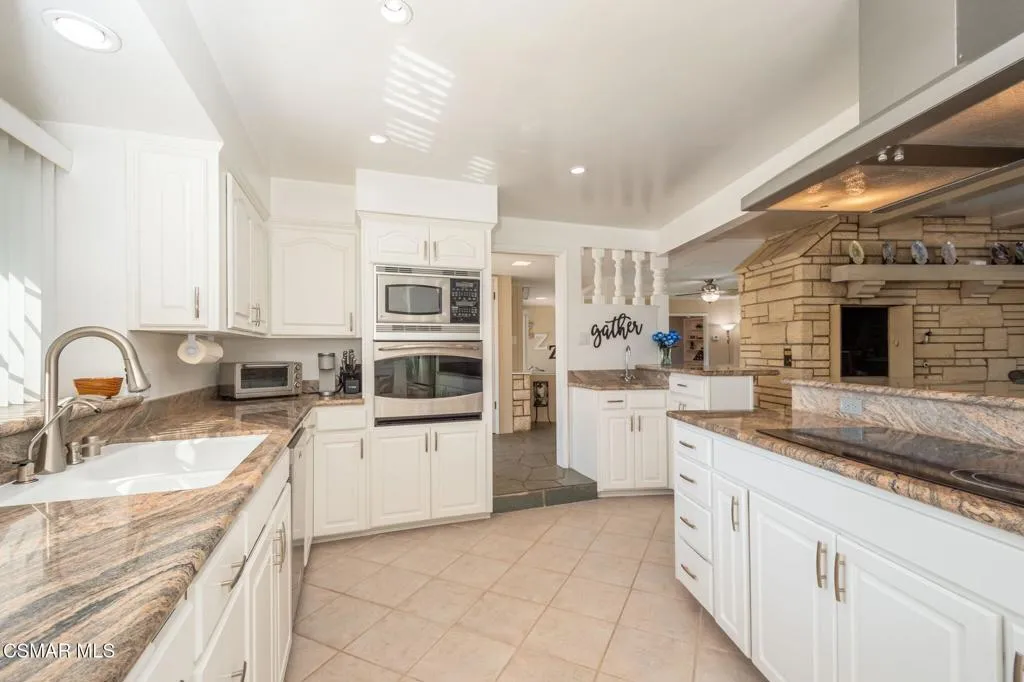 Welcome to this exceptional single-story home in the highly desirable Carriage Estates neighborhood of Oxnard -- a peaceful, walkable community known for its pride of ownership, friendly atmosphere, and quiet streets. This residence is anything but ordinary. Fully upgraded and filled with character, it offers warmth, charm, and distinctive features rarely found in today's homes. Fabulous curb appeal with the winding brick walkway and a patio area, beautiful, beveled glass door with sidelights. Rich brick fireplaces anchor the two living spaces, creating inviting rooms designed for gathering and connection. The dining area is truly one-of-a-kind, showcasing a built-in BBQ and rotisserie that transforms everyday meals into memorable experiences. Custom built-ins throughout, including a beautiful china cabinet and abundant storage, paneled walls and a dutch door, blend timeless style with practical living. Floors are neutral colored wood like which will blend with any color palette. Spacious bright and light upgraded kitchen with lots of windows and a cozy breakfast area. Warm toned granite counters, upgraded appliances, resurfaced cabinetry, new doors and drawer facing, newer sink and plumbing, exhaust fan as well with hood in cooktop, oven and microwave. Plenty of space for entertaining and gathering with friends and family all around the kitchen. Laundry area is a true large spacious room with sink and sewing counter and a bathroom with shower which makes it so convenient. This home also has two designated living areas, large family room and a cozy den which is perfect for gatherings. Primary retreat is fabulous with newer closet doors lots of room in closet and nicely remodeled bathroom. Secondary bedrooms are also spacious, one perhaps for an office. Custom built in area that is so well thought out and different for more storage. Remodeled spacious secondary bathroom with double vanities, shower and tub. Natural light pours in through plentiful windows, while four separate doors open to the backyard, creating seamless indoor-outdoor flow. The covered patio with recessed lighting is a perfect place to entertain. Plenty of outdoor space for relaxing by pool and a tranquil fountain, backyard speakers provide the perfect setting for relaxing evenings or effortless entertaining. Sparkling pool newly replastered with new light and split drains. Low maintenance home as well with synthetic turf in back. Large Shed has pool equipment so its out of your way. 2 car garage with extended length and built-ins with easy access to home. Close to shopping, parks and schools, the location is fabulous. Charming, unique, and thoughtfully designed, this Carriage Estates home offers comfort, personality, and a lifestyle that truly stands apart. Ahhh... Southern California living!