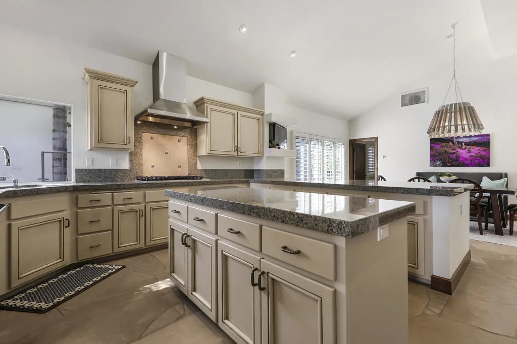 One of the best priced 4 bedroom home at PGA West. We're talking about soaring ceilings, tons of natural light, and a literal front-row seat to the Nicklaus Private golf course. Plenty of room to add a pool, spa and BBQ island. See photo.The kitchen is a total showstopper--it's been updated and features Viking appliances, granite countertops, double islands (yes, two!), so there's plenty of room for morning coffee, and wine night all at once. Plus, every single one of the 5 bathrooms has been remodeled, so you don't have to lift a finger. The best part? The primary suite is a total retreat. The ensuite is all marble with a huge steam shower--it's basically like having a private spa day every morning. Custom knotty alder doors and trim, crown moulding, brand new washer and dryer, Culligan water softener system and BBQ are more added features.Just mere steps to the many community pools. Unbeatable views of the fairway.This isn't just a house; it's a lifestyle. Come see it before someone else does!