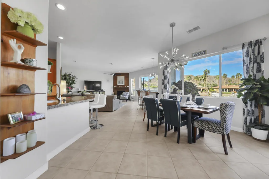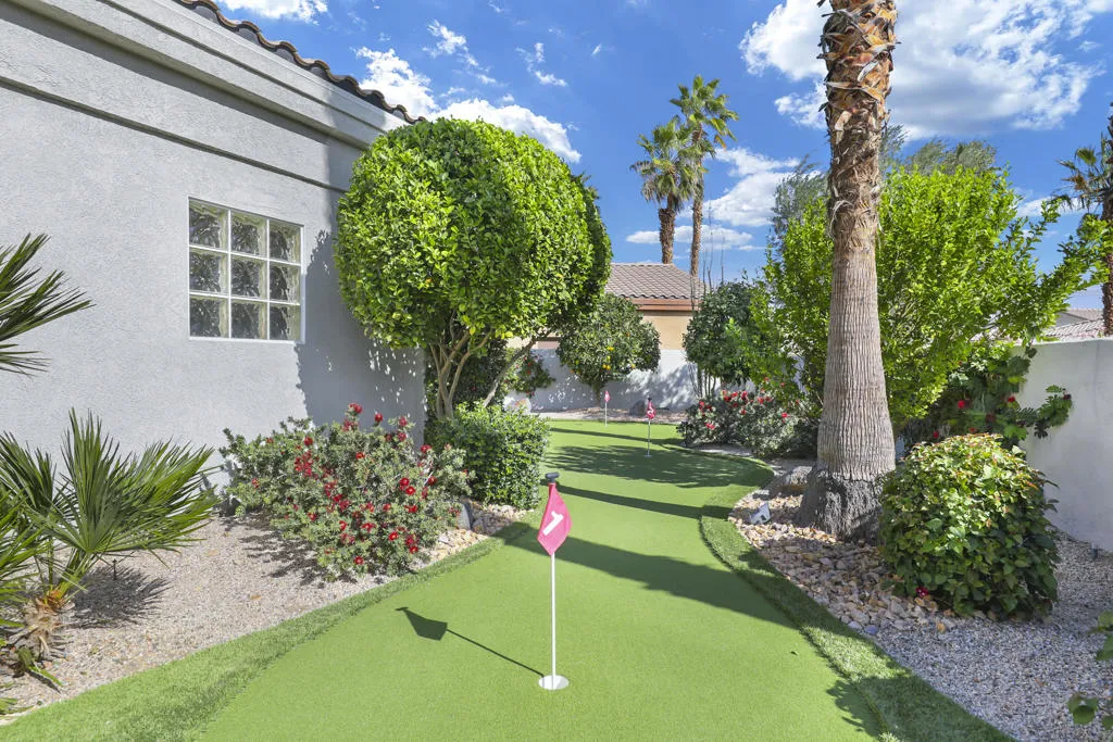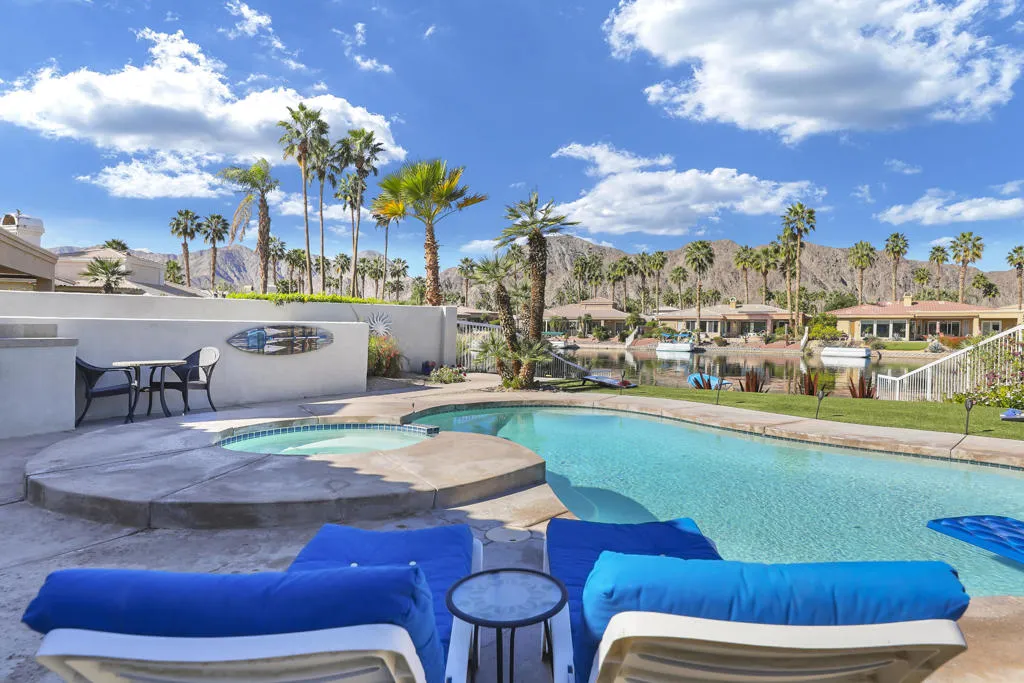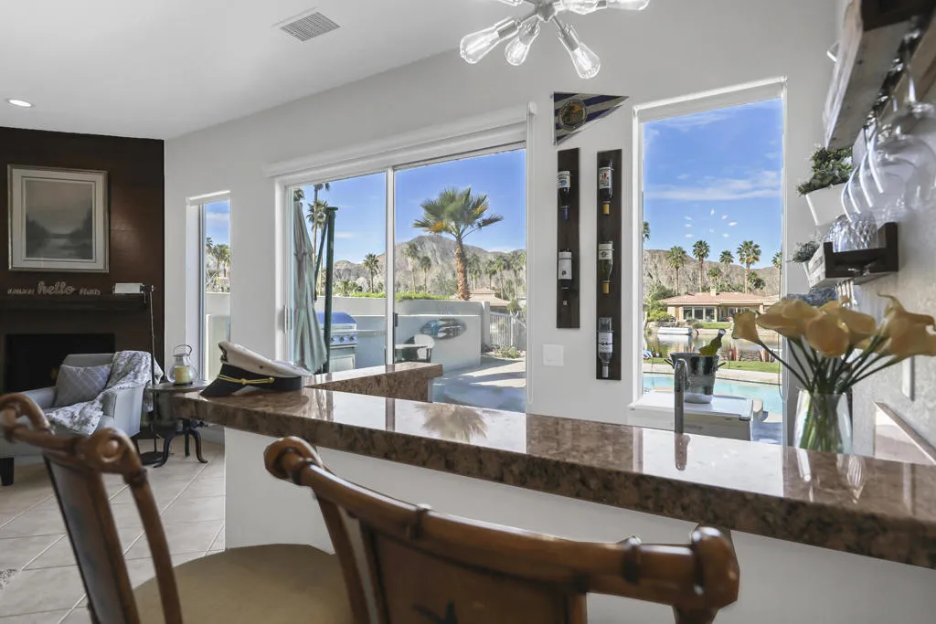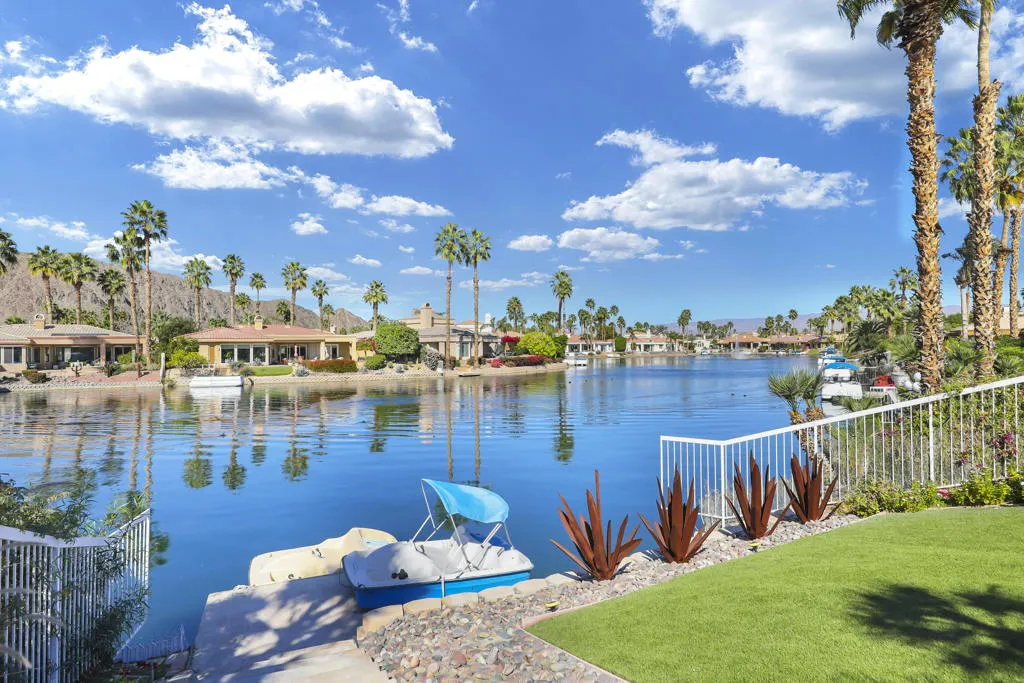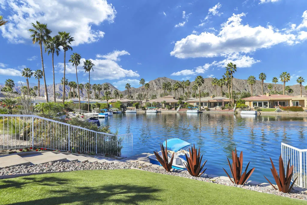 THIS IS IT!! WATERFRONT BEAUTY.... Captivating Panoramic Mountain & Spectacular Lake Views Abound! Courtyard Features a Classic 4 Hole Putting green...as well as Artificial Turf throughout the Backyard. Once you Enter the Double Glass Doors in your Foyer...You'll realize This is Home! Nicely updated and upgraded. Boasting: 3 Bedrooms, Plus a Private Office (possible 4th), and 3 Baths. Tile Flooring Displayed on a Diagonal, Gourmet Kitchen has Granite Counter Tops, Kitchen-Aid Stainless Steal Appliances set off with a Decorative Back Splash adding a Taste of Elegance! An Entertainer's Delight with 2 sit down Bars completely open to the Family Room with Walls of Glass Overlooking the Lake, Swimming Pool & Spa with Built-in BBQ Area. And Private Boat Dock! Over Sized Yard with Plenty of Room for Parties and Special Events. Baths have Updated Quartz Counter Tops and Glass inlaid in the Tile. Property Offered Furnished ! (with seller exemptions). Includes Paddle Boats! Room to add-on ADU/Pool House as well/upon approval. This 25 Acre Gated Lake Community has a Park Pavilion with Bocce Ball, Tennis/Pickle Ball Court, Dog Area, Heated Pool for Exercise Classes and a View you will Love Forever at Our Neighborhood Events! Boating and Kayaking are an Ultimate Favorite! Live The Lifestyle....Imagine...Dream....Believe...You are Here!