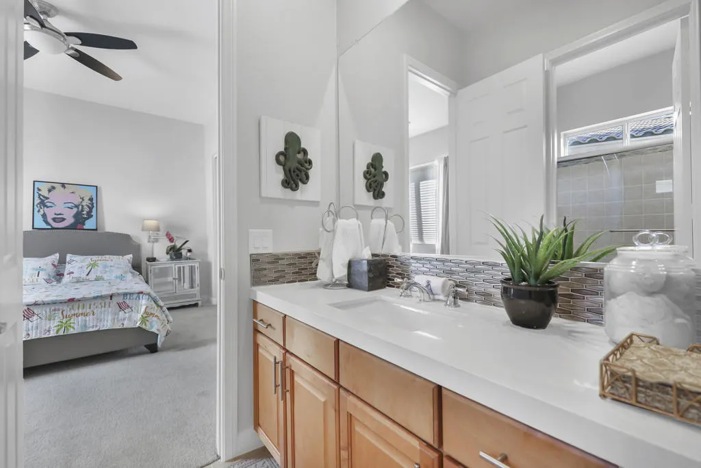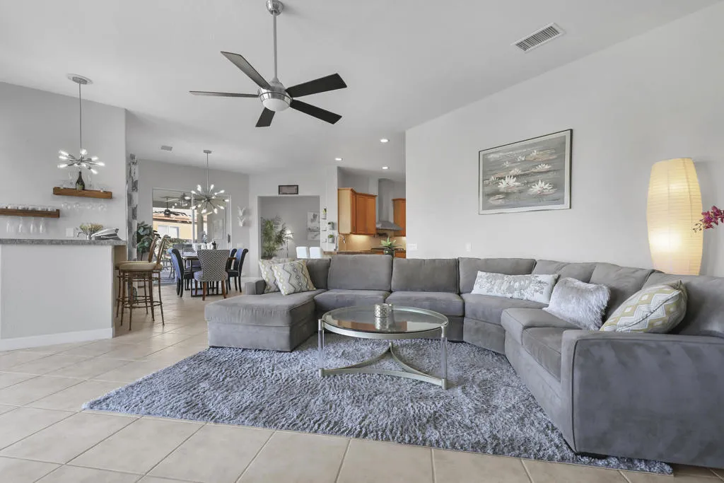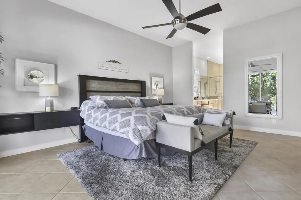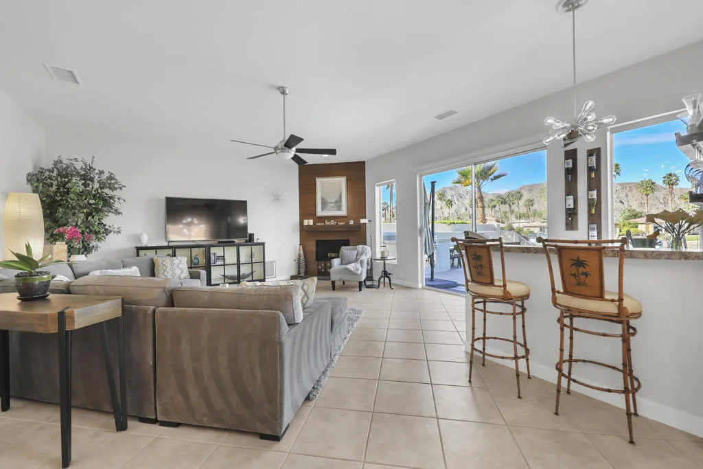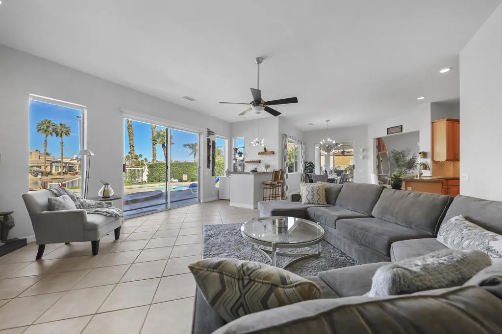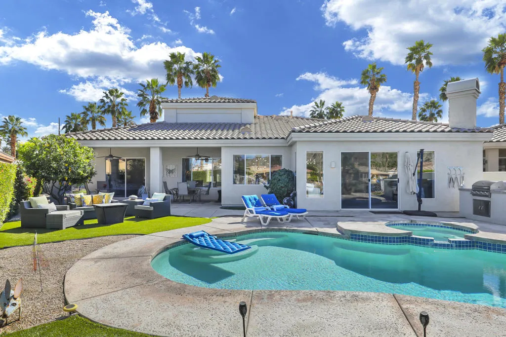 THIS IS IT!! WATERFRONT BEAUTY.... Captivating Panoramic Mountain & Spectacular Lake Views Abound! Courtyard Features a Classic 4 Hole Putting green...as well as Artificial Turf throughout the Backyard. Once you Enter the Double Glass Doors in your Foyer...You'll realize This is Home! Nicely updated and upgraded. Boasting: 3 Bedrooms, Plus a Private Office (possible 4th), and 3 Baths. Tile Flooring Displayed on a Diagonal, Gourmet Kitchen has Granite Counter Tops, Kitchen-Aid Stainless Steal Appliances set off with a Decorative Back Splash adding a Taste of Elegance! An Entertainer's Delight with 2 sit down Bars completely open to the Family Room with Walls of Glass Overlooking the Lake, Swimming Pool & Spa with Built-in BBQ Area. And Private Boat Dock! Over Sized Yard with Plenty of Room for Parties and Special Events. Baths have Updated Quartz Counter Tops and Glass inlaid in the Tile. Property Offered Furnished ! (with seller exemptions). Includes Paddle Boats! Room to add-on ADU/Pool House as well/upon approval. This 25 Acre Gated Lake Community has a Park Pavilion with Bocce Ball, Tennis/Pickle Ball Court, Dog Area, Heated Pool for Exercise Classes and a View you will Love Forever at Our Neighborhood Events! Boating and Kayaking are an Ultimate Favorite! Live The Lifestyle....Imagine...Dream....Believe...You are Here!