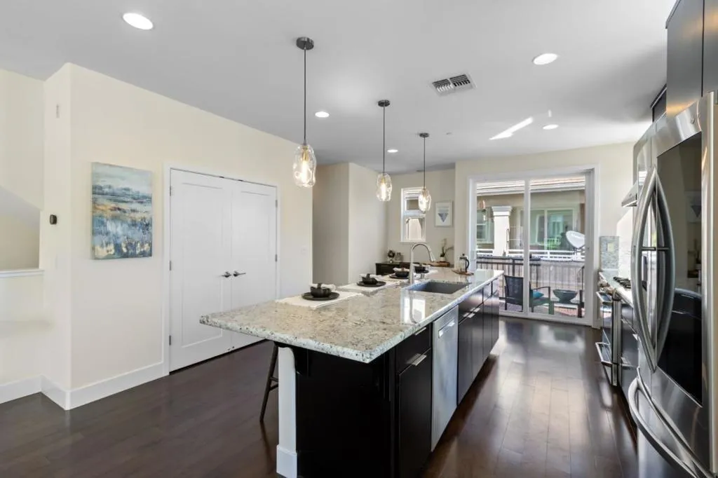 Located in the sought-after Avenue One community, this townhome is a 10! Fantastic corner unit with abundant natural light. North-east facing entry. Large windows fill the common living and entertaining areas. Unobstructed views can be enjoyed from most rooms, particularly the second and upper-level spaces. The flexible layout includes a private bedroom suite on the ground floor, with the primary suite and two additional bedrooms upstairs. The kitchen is a dream, both functionally and visually, featuring granite counters, quality brand stainless steel appliances, generous cabinet storage, a center island with breakfast bar, a pantry, and a built-in office desk. Enjoy a gated patio on the ground level and a balcony off the main living area with open east-facing foothill views. Amenities include wired ethernet, a 3-zone HVAC system with Nest thermostats for independent climate control, a video doorbell, a home security system, a water softener, and a side-by-side two-car garage with 240V EV-ready outlets. Avenue One residents enjoy access to a clubhouse, pool and spa, fitness center, and BBQ areas. Also nearby a dog park, nearby city and county parks, shopping, dining, public transportation, and major commute routes.