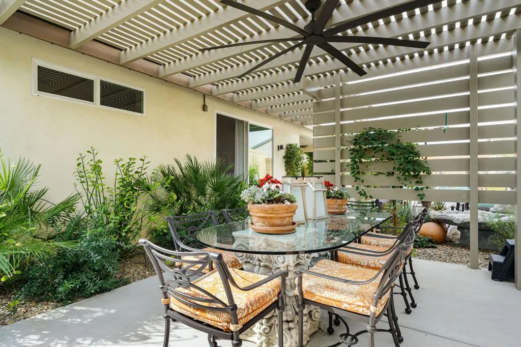 Welcome to your dream home in the highly desirable Agua Dulce community of Desert Hot Springs -- where modern upgrades, thoughtful design, and desert beauty come together. This stunning residence has been extensively upgraded, offering both style and functionality throughout. Step inside to discover beautiful upgraded flooring that flows seamlessly through the open-concept living spaces. The fully enhanced kitchen is a showstopper, featuring upgraded appliances, a designer backsplash, and modern finishes that make cooking and entertaining a true pleasure. The bathrooms have been tastefully designed with elevated finishes, creating spa-like retreats within your own home. Energy efficiency is top of mind with additional solar panels, helping you enjoy lower utility costs while living sustainably. Car enthusiasts and hobbyists will appreciate the expanded garage, offering extra space for vehicles, storage, or a workshop setup. Step outside to your private backyard oasis -- complete with a sparkling pool and beautifully designed landscaping that provides both serenity and privacy. Whether you're hosting gatherings or enjoying a quiet evening under the desert sky, this outdoor space is made for relaxation. In the front courtyard, you'll find a charming patio perfectly positioned to capture breathtaking mountain views -- the ideal spot for morning coffee or sunset unwinding. This exceptional property offers upgraded comfort, energy efficiency, and resort-style living all in one of Desert Hot Springs' most sought-after communities. Don't miss the opportunity to make this elevated desert retreat your own.