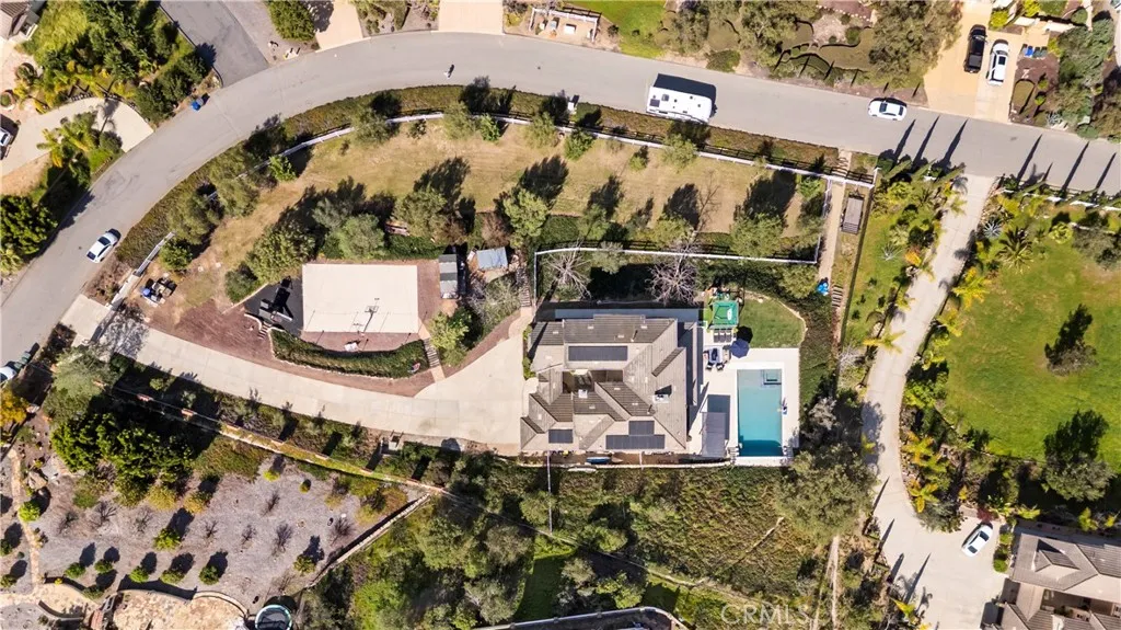 Located in the sought-after Morro Hills area of Fallbrook, this beautifully upgraded two-story home offers breathtaking eastern views of the Palomar Mountains and a true resort-style lifestyle.Thoughtfully designed for flexibility and privacy, the home features dual ensuite bedrooms. One conveniently located on the main level for guests or multi-generational living and another upstairs as an additional private retreat, while most bedrooms offer their own bathrooms, creating a highly functional and comfortable layout. Elegant French White Oak hardwood flooring spans the downstairs, staircase, and upstairs walkway, creating warmth and continuity throughout the main living areas. The chef’s kitchen is appointed with leathered Dolomite countertops, a custom backsplash, and newer appliances, while striking wood accent walls enhance both the family room and primary suite. Upstairs features plush 1-year-old Karastan carpet, adding comfort to the secondary bedrooms. The luxurious primary showcases an automatic fireplace and spacious his-and-hers closets. Outdoors, the expansive backyard delivers a private resort experience with a 3-year-old pool featuring a built-in automatic cover with Bluetooth capability, waterfall, jumping platform, spa, Baja shelf. Along with an in-ground basketball hoop, pickleball court, golf practice net, wood play structure, chicken coop. Mature trees and a fully fenced white farmhouse-style vinyl fence provide privacy and charm, completing this exceptional Morro Hills retreat.