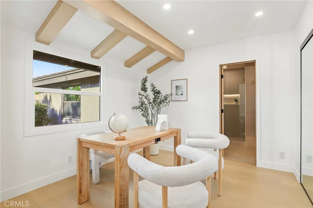Fully reimagined from A to Z by a French designer, this spectacular one-of-a-kind modern residence is a rare architectural gem. Every detail has been thoughtfully curated with premium materials and exceptional craftsmanship, creating a truly unique, move-in-ready home that will not last. This full remodel features a brand-new electrical panel with fully updated electrical throughout, all-new plumbing, new attic insulation, and brand-new dual-pane windows across the entire home. Wide plank white oak engineered hardwood floors flow seamlessly throughout, complemented by new white oak interior doors and all-new recessed LED lighting. The designer kitchen is a true showpiece, featuring all new Forno appliances, quartz countertops throughout the home, and a spectacular waterfall island with integrated dining area—perfect for entertaining. Spa-inspired bathrooms showcase large-format Italian tile, textured feature walls, travertine and Taj Mahal-inspired finishes, solid white oak vanities, LED anti-fog mirrors, illuminated niches, and under-vanity lighting for a refined modern ambiance. The living space is anchored by a stunning lime-wash fireplace with custom shelving, blending warmth and contemporary elegance. Exterior upgrades include new siding, all-new landscaping, new garage slab, new concrete pathway, new garage door with motor, and custom slatted aluminum panels. The garage also features a new 240V EV charging outlet. Smart features include a Ring camera system. Custom closets with new sliding doors have been thoughtfully designed in every bedroom. Spectacular. Unique. Architectural. A true modern masterpiece and rare opportunity to own a fully turnkey designer home built with uncompromising attention to detail.