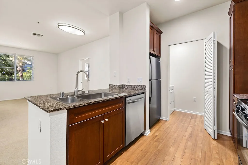 Welcome to Avenue One, a gated resort-style community in the heart of Irvine just minutes from UCI, John Wayne Airport, Newport Beach, and Fashion Island. This third-floor 2-bedroom, 2-bath residence offers a bright open layout with tree and city-light views and two private bedroom suites, each featuring a full bathroom, walk-in closet, and tiled shower with glass enclosure—an ideal layout for roommates or guests. The kitchen is finished with granite countertops, recessed lighting, and full appliances including refrigerator, washer, and dryer, while the living room and secondary bedroom open to a spacious private balcony perfect for relaxing or entertaining. Additional highlights include two assigned side-by-side parking spaces located near the elevator for convenient access. Residents of Avenue One enjoy exceptional amenities including a resort-style pool and spa, fitness center, indoor basketball court, clubhouse, BBQ areas, fire pit, playground, concierge service, gated entry, and guest parking. A rare opportunity to lease in one of Irvine’s most amenity-rich and centrally located communities.