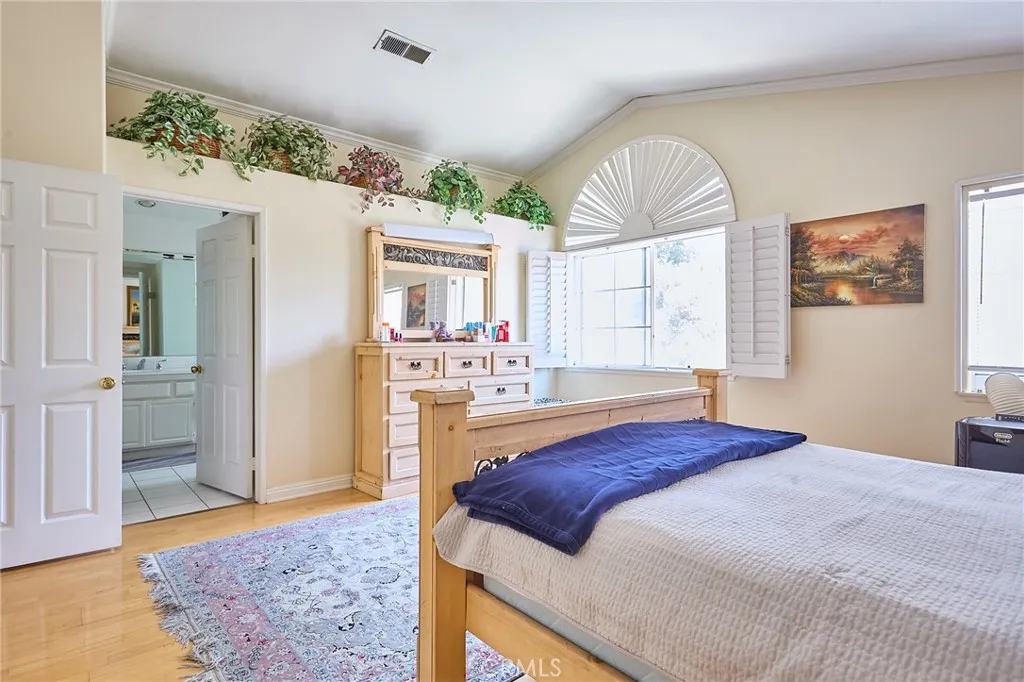 Large 3-bedroom split-level townhouse surrounded by stunning mountain trails and breathtaking scenic views! Ideally situated in a peaceful location away from the city's hustle, this home offers both privacy and a well-planned and the largest open floor design in the community that welcomes an abundance of natural light. Hardwood flooring flows seamlessly through the bedrooms, dining area, and hallways, complemented by soaring vaulted ceilings in the living and dining rooms. Enjoy the tranquility of nature from the spacious balcony, conveniently accessible from both the kitchen and living room, overlooking a serene back patio and lush greenery. The upper level expansive primary suite boasts a high ceiling, a generous walk-in closet, and a spa-like en-suite bath with dual sinks, a shower stall, and a soothing jacuzzi tub. The lower level features a versatile den/family room, two additional bedrooms, a full bath, and a dedicated laundry area. Sliding glass doors lead to a rare oversized patio—an outdoor retreat offering complete privacy and beautifully manicured grounds with direct yard access to trails and only 40 steps away from the massive outdoor pool, jacuzzi, BBQ, and lounge areas. Additional highlights include a two-car garage with abundant storage and cabinetry. A perfect combination of comfort, style, and natural beauty in an idyllic tranquil setting! Minutes from the shops, restaurants, theater, and more at The Vineyard Shopping Plaza in Porter Ranch.