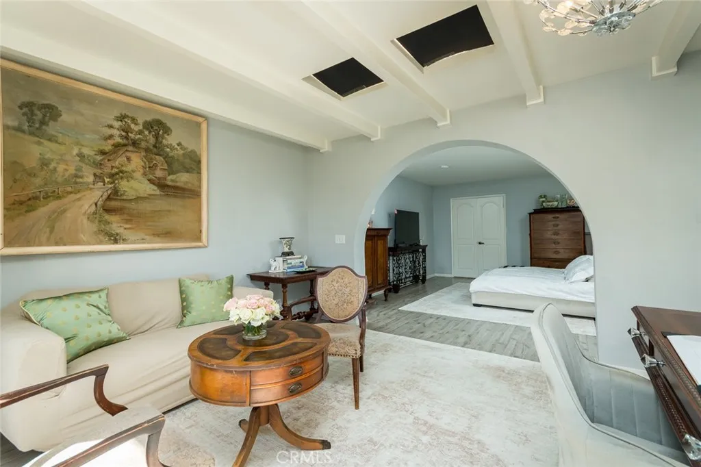 Located in the prestigious Verdugo Woodlands neighborhood, this exceptional residence on Beaudry Terrace offers refined living in one of the most sought after area of Glendale. Located high above the golf course just moments from Oakmont Country Club, this home combines serene canyon surroundings with city views, convenient access to premier golf, dining, and award winning schools. Inside, you’ll find a thoughtfully designed floor plan featuring spacious living areas with high ceilings, open floorplan & views to the garden & pool area that offer a seamless indoor-outdoor flow. The main living area flows effortlessly into the dining space and kitchen, creating an ideal layout for both intimate gatherings and larger-scale entertaining. The generous great room with its arches, a custom bar, updated kitchen with walk-in pantry & a large family room with a fireplace. The dining room and updated kitchen with quartz counters & gourmet stainless steel appliances provide both functionality and style for everyday living. On the main level, there are two comfortable, well-appointed bedrooms that provide restful retreats. In addition, there is an updated hall bath with double glass sinks & custom glass tiles. In addition, there is a primary suite abundant with natural light, has a separate seating area to take in the tranquil views of the mountains & the city lights or can be used as a study. Furthermore, it has a well appointed primary bath with double vessel sinks, a separate vanity area, two closets one of which is a large walk in closet with custom cabinetry. In addition, just off the main entrance is a loft that has a high ceiling with custom cabinetry & can be used as an office or additional fifth bedroom. Above the garage, there is a seperate loft studio that offers comfort and privacy. It includes a kitchenette with marble counters & bathroom with custom marble tiles. The best features of this studio is its size of over 520 square feet, high ceilings & more windows then walls to enjoy the tranquil views of the city lights & mountains. This room also has access to a balcony that wraps on three sides of the home & is perfect for watching a sunset. The backyard provides a peaceful retreat for outdoor dining, gardening, splashing in the pool, relaxing in the spa or simply enjoying the canyon views. This home located in the Verdugo Woodlands known for its scenic beauty, represents a rare opportunity to own an exceptional home.