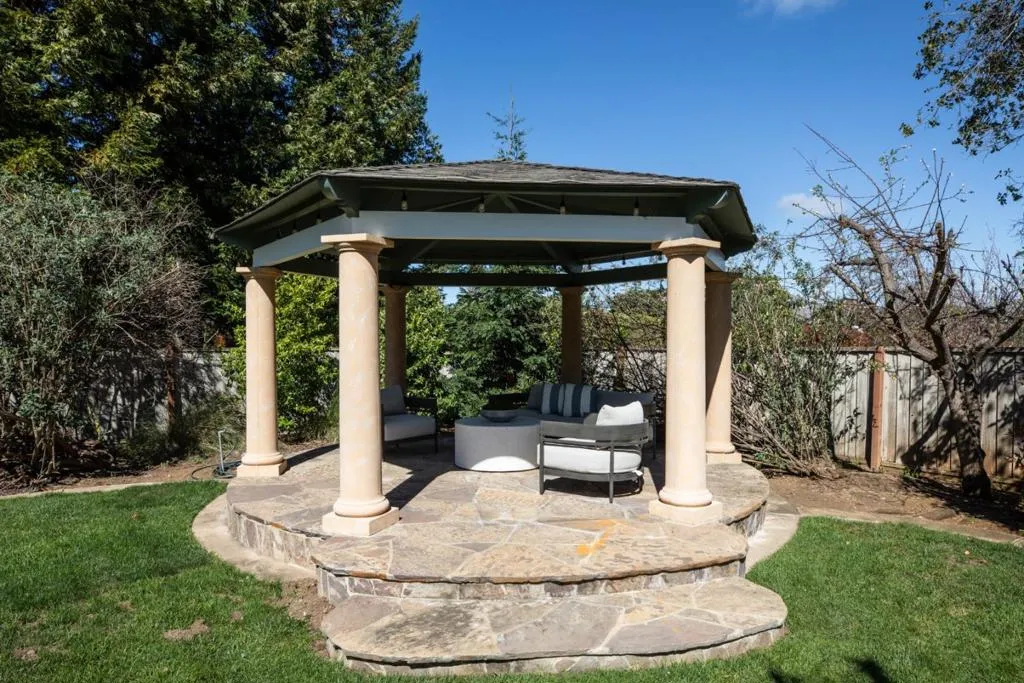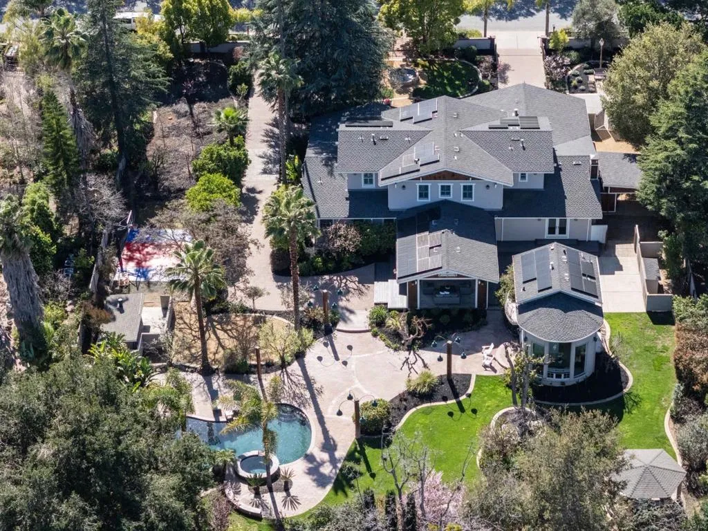 Located on approximately 0.86 acres, this exceptional gated property is perfectly located with walkability to shops and restaurants and with access to acclaimed Los Altos schools. This property offers luxury living on a rare legacy setting with amazing outdoor venues for extraordinary entertaining on a grand scale. Expansive stone terraces, lawn, decks, and a heated loggia connect the indoors to the outdoors, all designed for effortless gatherings around the pool, spa, and waterfalls. The two-story home features 4 bedrooms, an office, 4 full baths, and 2 half-baths, plus a separate 1-bedroom, 2-bath ADU, also ideal for guests or extended celebrations. Generous proportions and an open layout are supported by primary and caterers kitchens, a full bar, wine cellar, and a separate living room or media room. The luxe primary suite and dedicated office are located on the main level, with three additional bedroom suites plus lounge upstairs. All just moments from the Los Altos Village and served by excellent Los Altos schools.