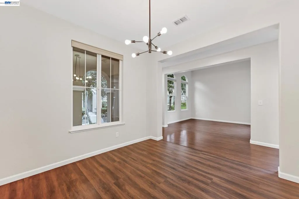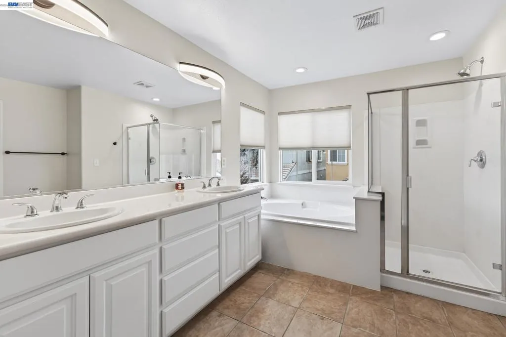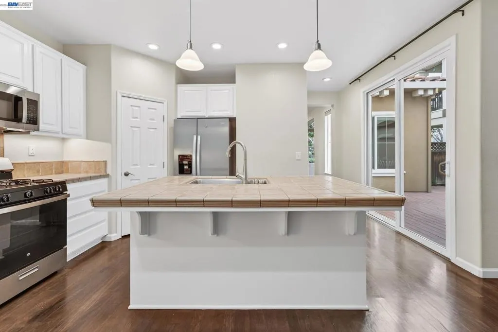 Welcome to 43 W Casita Ln, a stunning 2,341 sq ft residence in Mountain House, CA, featuring 3 bedrooms and 2.5 bathrooms. This Mediterranean-inspired home greets you with a charming stucco exterior and a lushly landscaped entryway. Inside, an airy, open-concept floor plan is defined by soaring ceilings, designer neutral paint, and sleek wood-look flooring throughout the main level. A light-filled formal living area with elegant arched windows flows into a dining space highlighted by a contemporary chandelier. The gourmet kitchen boasts crisp white cabinetry,stainless steel appliances, and a large tile-topped island with a breakfast bar, all overlooking a family room with a cozy tile-surround fireplace. Upstairs, a versatile loft provides additional living space, while the primary suite offers a spa-like retreat with dual vanities, a deep soaking tub, and a separate glass-enclosed shower. Secondary bedrooms are spacious and share a well-appointed bath with double sinks. Sliding glass doors lead to a private yard space with a low-maintenance wooden deck perfect for outdoor relaxation. Welcome Home!