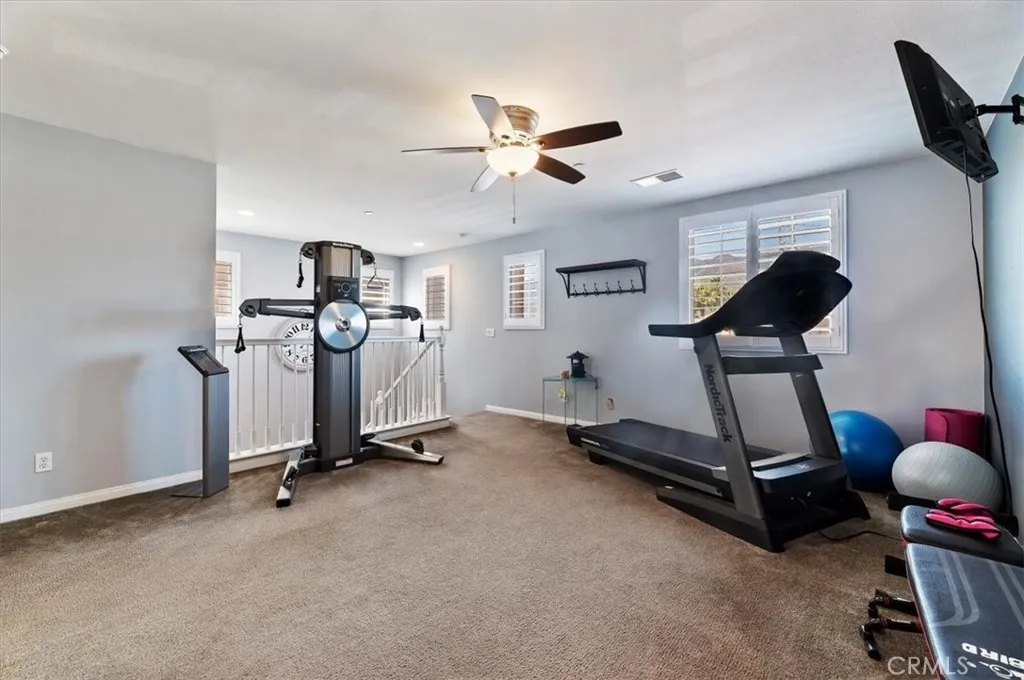 Gated community located in the desirable Shady Trails community of North Fontana. Open-concept floor plan with a seamless flow between the living, dining, and kitchen areas, creating a functional and inviting great room. Main level includes a powder room for guests and everyday convenience. Upstairs offers a primary suite with a walk-in closet and a private bath featuring dual vanities and a walk-in shower. Three additional bedrooms, a full bath, a loft/bonus space ideal for work or play, and a downstairs laundry room provide flexible living options. Private backyard space is suited for outdoor gatherings, relaxation, and everyday enjoyment. Community amenities include multiple pools, spa areas, a clubhouse, BBQ areas, a private movie theater, game rooms, a billiards and poker room, a library/business center, two fitness centers, playgrounds, and basketball and tennis courts. Conveniently located with easy access to the 210, 15, and 10 freeways. Close to shopping, schools, dining, and parks.
