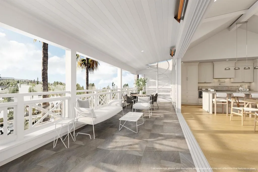 Welcome to THE GRAND, the new definition of luxury living in Coronado. This penthouse residence is defined by a magnificent terrace - a dramatic outdoor sanctuary designed for grand-scale entertaining, soirées, & seamless indoor-outdoor living. Above, a spacious rooftop deck elevates the experience even further. Complete with a two-car garage & storage, this home is designed to be both your serene escape & an unforgettable gathering place. Perfectly positioned in the heart of Coronado, enjoy front-row views of the 4th of July and Christmas parades, steps from Spreckels concerts and the island’s finest dining and downtown. Inspired by the timeless grandeur of Coronado’s architecture, THE GRAND was designed by AIA award winning architect Christian Rice. Residents will have an option to enjoy exclusive membership access to one of the world’s most celebrated beachfront resorts, the Del Club at the Hotel Del Coronado, seamlessly paired with the Hotel Del’s resort-style amenities creating a natural extension of luxury living*. More than a residence. A private retreat. A lifestyle beyond compare. The Grand Coronado, a boutique collection of 12 luxury residences masterfully designed by AIA award winning architect Christian Rice. Each home offers its own unique features, allowing you to choose the residence that best fits your lifestyle. Each residence offers single-level living for exceptional comfort and ease. The building includes a central elevator, with three select residences enjoying direct, private elevator access. Additional conveniences include a trash chute, dedicated storage spaces, and thoughtfully planned parking. Each residence includes two parking spaces, with a mix of private two-car garages and tandem configurations. The floorplans are exceptionally well designed, with 11 of the 12 residences offering three bedrooms, and featuring 2.5 or 3 bathrooms, all en-suite. Only three exclusive residences boast private rooftop decks, offering elevated outdoor living and captivating views. Every residence is turn-key, brand new, and impeccably appointed, showcasing a curated collection of elevated design elements…warm, sophisticated neutral palettes, premium quartz surfaces, polished nickel fixtures, heated bathroom floors for year-round indulgence, and customized designer-selected finishes throughout. HOA dues are estimated at $1,000 per month. Perfectly situated near everything that defines the Coronado lifestyle, The Grand offers a rare opportunity to enjoy luxury, convenience, and timeless design in one of the most desirable locations on the island. Estimated completion summer 2026. Materials, specifications, plans, pricing, designs, schedules, and delivery dates may change without prior notice. All renderings, photos, and illustrations are conceptual and may not reflect the final features or views. The information provided is not guaranteed to be accurate, complete, or suitable for any particular purpose. * Del Club membership is contingent upon approval by the Del Club and shall be at The Del Club’s discretion.