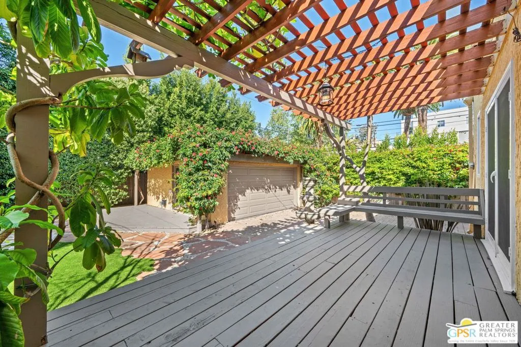 A classic Spanish home - remodeled and move-in ready - is now available in the highly desirable Beverly Center/Miracle Mile and West Hollywood adjacent neighborhood. This charming residence retains its original architectural character while offering thoughtful updates for modern living. Original details abound, including a private front courtyard, turret entry, arched living room window, high barrel ceilings, and original woodwork throughout. The bright and spacious dining room separates the living room and kitchen and also features double-door access to the front courtyard, creating an ideal indoor-outdoor flow for entertaining. The updated kitchen features high-quality wood cabinetry, stone countertops, a gas cooktop, and built-in oven and microwave. The hall bathroom has been tastefully updated with a double vanity and step-down shower/tub combination. The rear primary bedroom offers flexible living and can be divided into two spaces with pocket doors - perfect for a home office, nursery, or sitting area. A rear deck off the primary bedroom leads to a private outdoor oasis with mature hedging. The newer two-car garage has been partially divided with French doors to create a versatile bonus room. An interior laundry room located just off the kitchen adds everyday convenience. Additional features include recessed lighting throughout, tile flooring in the kitchen and bathrooms, and bamboo flooring in the main living areas. Ideally located in close proximity to the Beverly Center and the Melrose shops and restaurants and the vibrant dining and nightlife of West Hollywood, this home offers classic charm in one of the city's most sought-after neighborhoods.