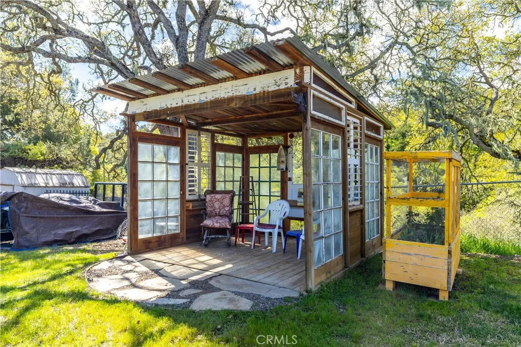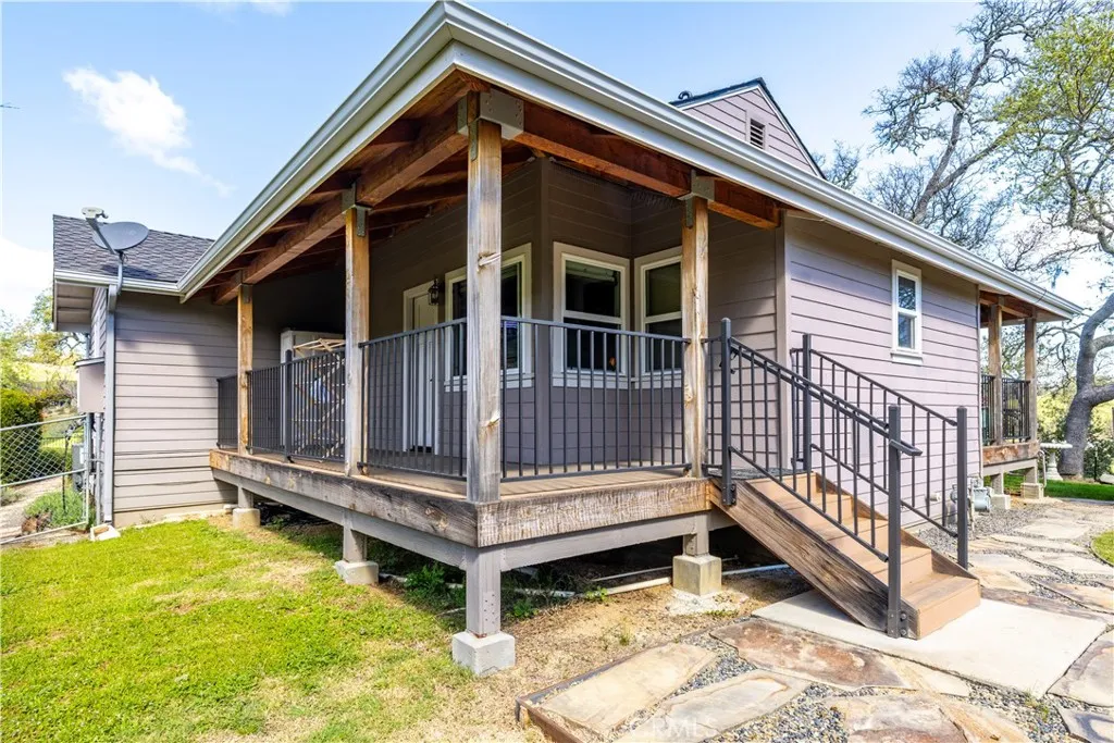 Set on a private 4.3± acre parcel in a quiet Westside cul-de-sac of large, well-kept properties, this beautifully updated retreat offers approximately 1,520± square feet in the two-bedroom, two-bath main home, along with a detached garage featuring an apartment and full bath—ideal for guests or extended living. Inside, the home blends comfort and efficiency with a recently remodeled kitchen showcasing quartz countertops and opening to a large living room with a cozy wood-burning fireplace. Over the past decade, improvements include a new roof, wraparound decking, updated flooring, new doors, Milgard windows, Hardie siding, a recently replaced HVAC system and an updated primary bathroom. An owned solar system serves the main home - with typical electric bills under $10 per month. While connected to the grid, the property also offers LG battery backup and generator wiring for added peace of mind. Additional highlights include an owned LifeSource water treatment system and a charming reclaimed lumber she-shed, perfect for a studio or peaceful backyard retreat. Outdoors, the acreage includes three varieties of mature oaks, fully fenced yard, beautiful lawn, established landscaping with drought-tolerant native plants on timed drip systems, paved driveway, potential RV parking, three-space carport, and even a private golf driving range. Equestrian amenities include a metal framed horse barn with two covered stalls, enclosed feed and tack storage, and a nearby ½+ acre fenced pasture—completing this versatile and thoughtfully improved property.