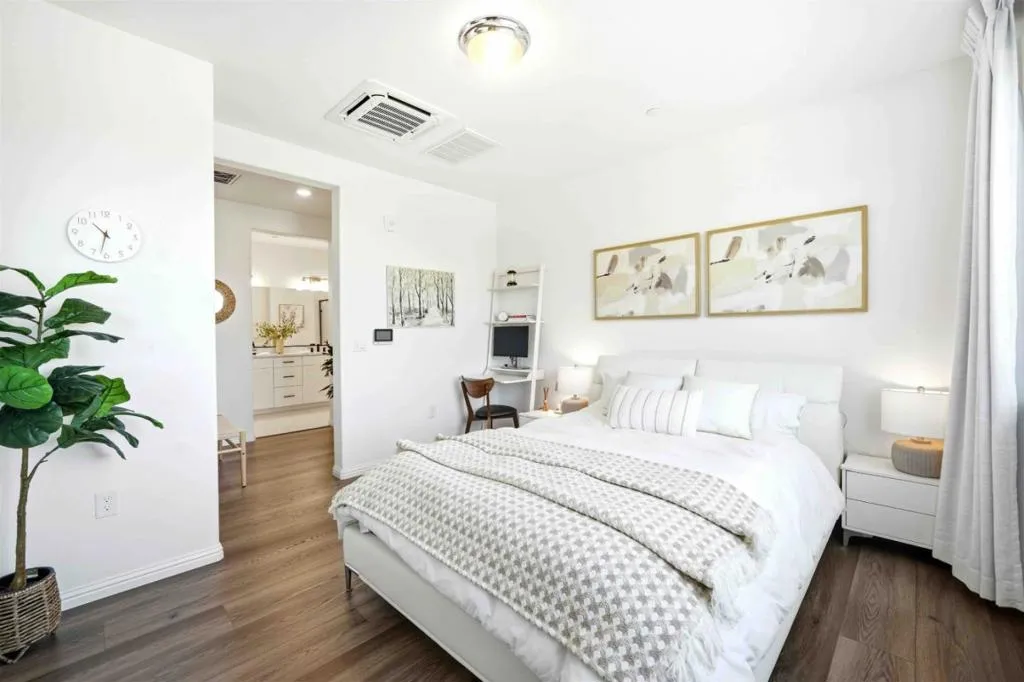 Live the Santana Row luxury lifestyle in this rare corner residence with no shared walls, the only floor plan like it in the building. Designed for comfort and privacy, the home features unobstructed views, incredible natural light, and premium upgrades including KitchenAid appliances, Samsung Bespoke refrigerator, Moen fixtures, and luxury vinyl plank flooring throughout. Enjoy individually controlled heating and AC for personalized comfort. The location is unbeatable, just 4 minutes to Santana West, 6 minutes to Santana Row, and 15 minutes to Valley Fair, offering walkable access to top restaurants, nightlife, fitness studios, and shopping. Located across from a beautiful city park with green space, playground, basketball court, and dog park, the home blends vibrant city living with a quiet neighborhood feel. Amenities include rooftop deck with grills, elevator access, bike storage, prime parking, solar panels; this community has so much to offer!