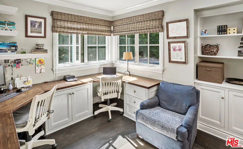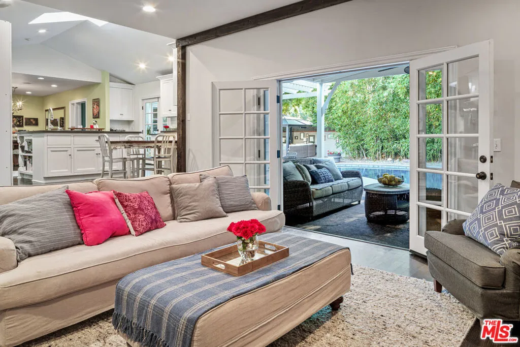 Tucked at the end of a quiet cul de sac in the sought after Landale Square neighborhood, this spacious gated compound offers a wonderful sense of privacy and calm while still being moments from the best of Studio City and Valley Village. Campbell Hall School, Gelson's Market, and the many restaurants and boutiques along Ventura Boulevard are all just a short distance away.Set on approximately one third of an acre, the property features 4 bedrooms, 5 baths, and nearly 3900 square feet of living space surrounded by mature landscaping, lush greenery, and a thriving fruit orchard with eight varieties of citrus trees on park-like grounds. A generous seven car motor court provides plenty of space for guests and everyday convenience.Inside, an open and airy floor plan oozes with charm and is filled with natural light, enhanced by deep skylights that create a bright and welcoming atmosphere throughout the home. Rich hardwood floors, crown molding, custom cabinetry, and thoughtful architectural details add warmth and character, while three wood burning fireplaces bring a cozy and inviting feel to the living spaces.The main level opens to several outdoor areas designed for easy indoor outdoor living. An oversized pool and expansive deck are perfect for entertaining or enjoying sunny afternoons, while the outdoor sitting area and cabana offer a peaceful place to relax and take in the surrounding gardens.Upstairs, a private guest suite offers wonderful comfort with its own full bathroom, a second washer and dryer, and a spacious balcony that feels like a quiet escape among the trees.Combining the feel of a private compound with easy access to Ventura Boulevard dining, shopping, top rated schools, and nearby transportation, this special property offers a rare balance of comfort, privacy, and convenience. Welcome to 4537 Agnes Avenue, a truly inviting place to call home.