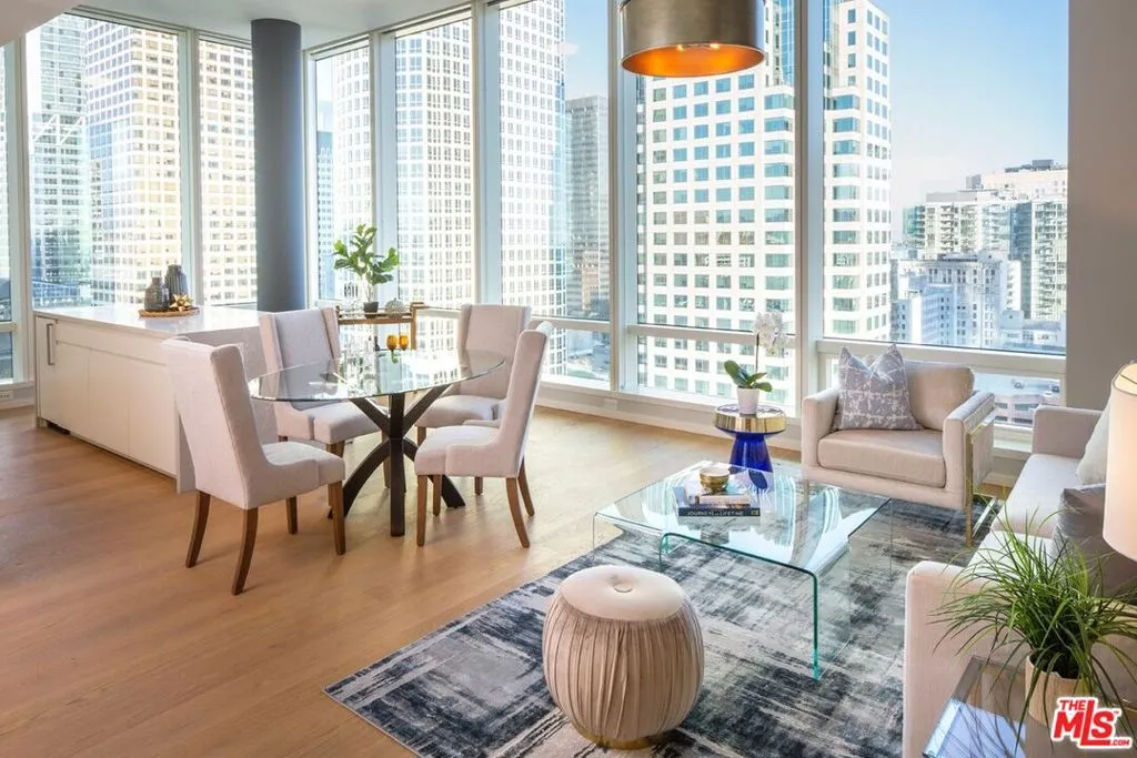 Wrapped in walls of glass, this stunning corner residence is bathed in natural light and surrounded by sweeping city views. A generous open concept 2BR/2BA with a grand living area and spectacular vistas. The residence features integrated Miele appliances, Caesarstone countertops, custom Italian cabinetry with LED lighting and a Nest Learning Thermostat. Bath includes a custom vanity with Hansgrohe and Duravit fixtures. Expansive floor-to-ceiling windows create a dramatic backdrop for both everyday living and entertaining. Open living and dining areas flow seamlessly, framed by warm French oak flooring and clean architectural lines. Metropolis spans an entire city block in vibrant South Park and offers 40,000+ SF of resort-style amenities, including the Met Nine clubhouse, junior Olympic-sized pool and spa, Skypark with fire pit, fitness center with TechnoGym equipment and yoga studios, screening room, business center, dog park, and 24/7 lobby ambassador service. Located moments from Crypto.com Arena and L.A. LIVE. Incentives up to $40,000 available. Portfolio financing available.