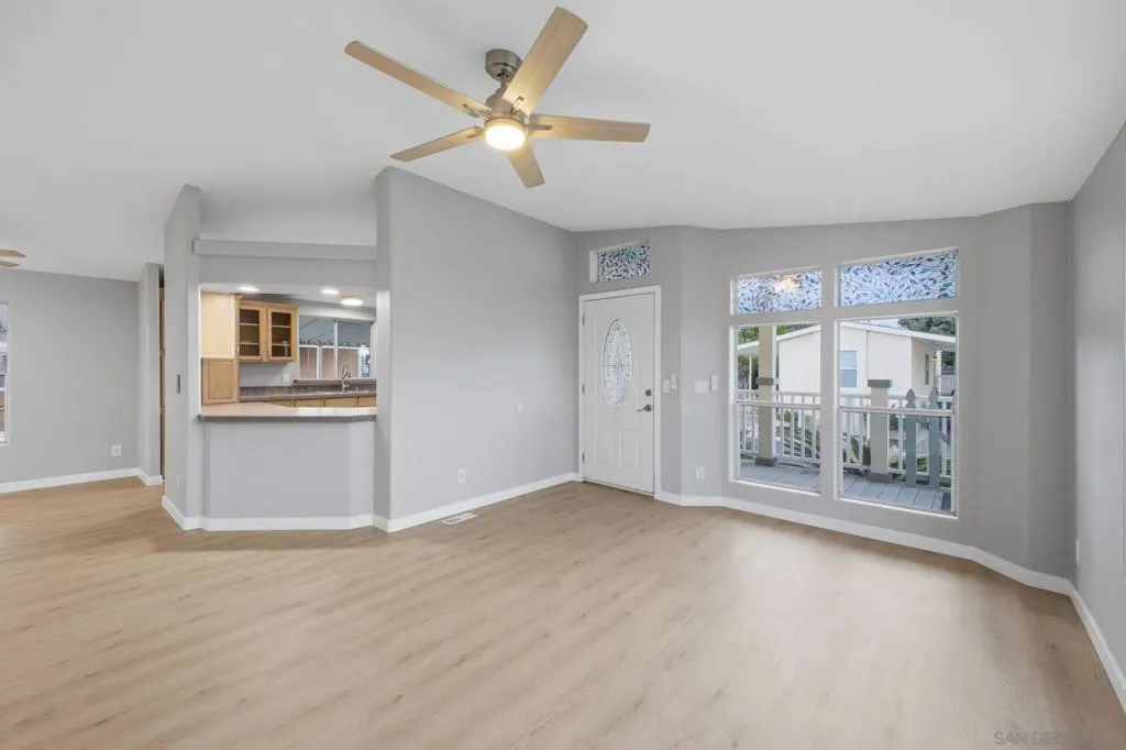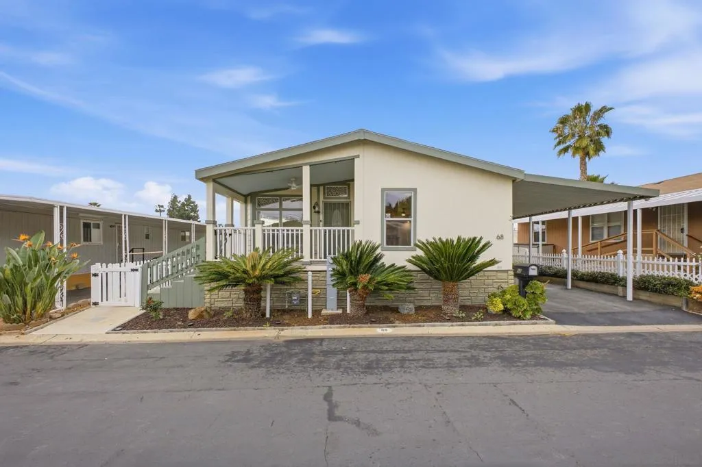 Welcome to this remodeled home located within the gated Rancho Mesa 55+ community. The front porch offers a comfortable outdoor space suitable for morning coffee, reading, or relaxing throughout the day. Inside, the home features updated flooring, newer appliances, and refreshed interior finishes. The layout offers an open-concept living and dining area with natural light throughout, creating a bright and functional living space. The kitchen is positioned adjacent to the main living area and includes ample cabinet storage and included appliances, providing convenience for everyday use and entertaining. This home offers three bedrooms and two full bathrooms, allowing flexibility for guests, a home office, or additional living space. The primary bedroom includes an en-suite bathroom. The exterior includes landscaped areas and a private outdoor setting. The Rancho Mesa community features gated access and maintained common areas, with proximity to shopping, dining, and other everyday amenities.