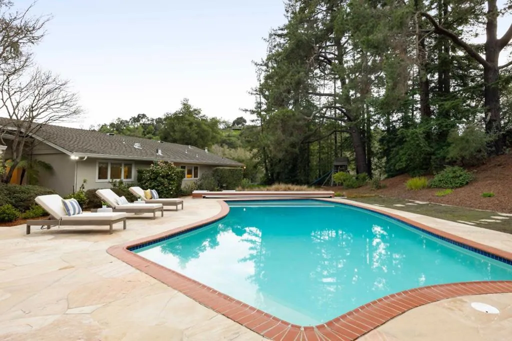 Set on more than 1.4 acres in the natural beauty of Los Altos Hills, this bright California ranch offers nearly 4,400 sq ft of living space, including a 1-bedroom, 1-bath pool house, all surrounded by privacy and park-like grounds. Engineered hardwood floors and abundant natural light highlight airy interiors with expansive formal rooms, a granite kitchen with Thermador and Miele appliances, and a walk-out family room with fireplace. Four bedrooms in the main home include an expansive primary suite. Outdoors, enjoy a front fire pit patio, backyard pool heated by solar, built-in grill, generous patio and lawn, and the pool house. Additional features: AC and newly epoxied 2-car garage. Minutes from Palo Alto, Stanford, downtown Los Altos, and acclaimed Palo Alto schools Nixon, Fletcher, and Gunn (buyer to verify eligibility).