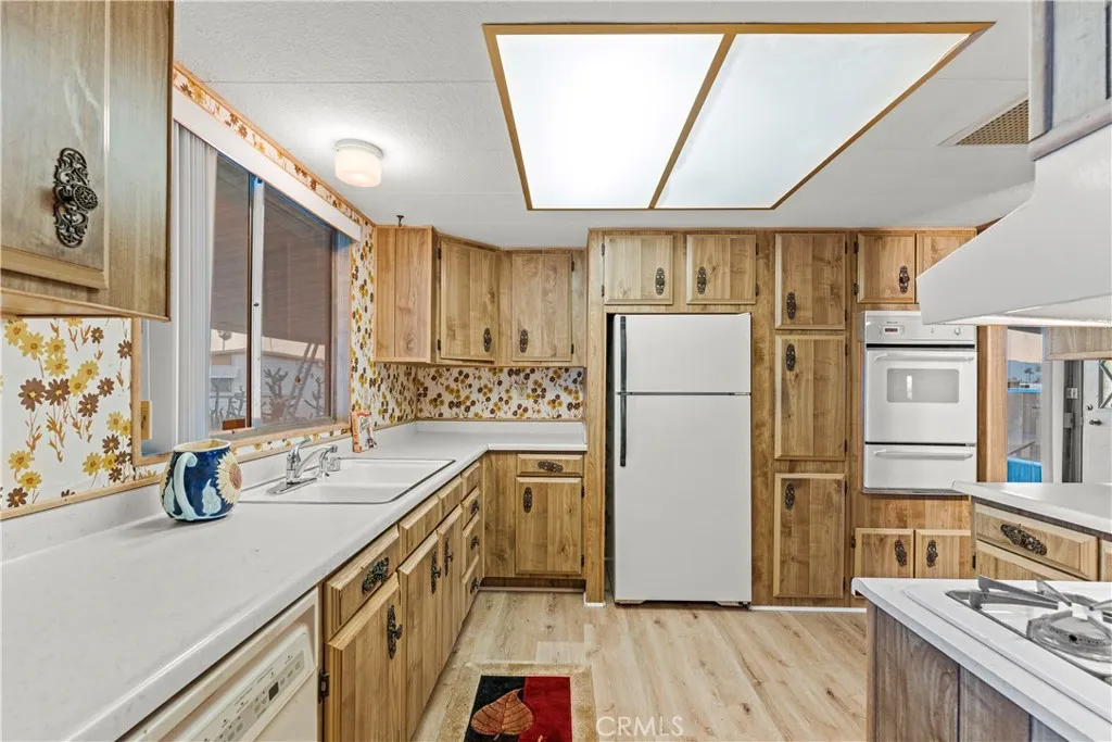 Welcome to this spacious 2-bedroom, 2-bathroom double-wide mobile home in the heart of Desert Hot Springs! Situated on a larger-than-normal lot for the area, this property offers extra outdoor space with endless possibilities — whether you’re looking to garden, entertain, or simply enjoy the desert lifestyle. Inside, you’ll find a functional and inviting layout with generous living spaces, perfect for relaxing or hosting guests. A built-in wet bar adds a unique touch for entertaining and makes the living area feel even more welcoming. Both bathrooms feature brand-new flooring, providing a fresh, updated feel where it matters most. With its great floor plan, oversized lot, and thoughtful updates, this home presents an incredible opportunity. Priced to sell, great for those looking for an affordable desert retreat. This community also has a low HOA fee, and no space rent you own the land. Don’t miss your chance to own a well-located property with space, charm, and value!