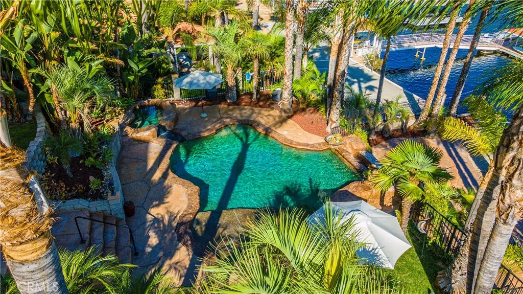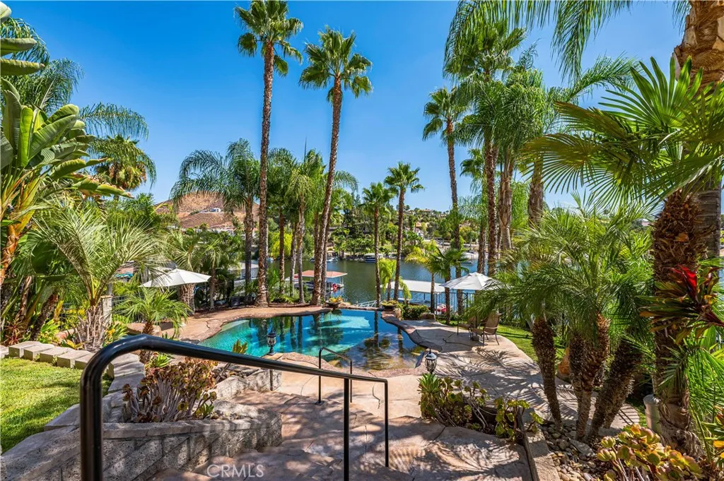 This 2001 "Paul Olsen" designed home embodies the Canyon Lake lifestyle. Located a stones throw from the main lake on Big Bass Cove this home offers a tropical paradise with an infinity edge rock pool and spa framed by lush tropical landscaping. The pool sits steps from the water over looking the fire pit, sandy beach and large "U" dock with hoist and cover. As you enter through the 12' iron front door the impressive custom finishings and spectacular lake views will "WOW" the most picky buyer. This home offers a large open floor plan, travertine flooring, large kitchen with custom cabinets, stainless steel and panel ready appliances with hidden refrigerator drawers. Sit back and relax while watching your favorite movie in your own custom theater room with 100" projection screen not to mention a workout room and kids play area that is an addition to the square footage of the home. This home also features a solar system which offsets the majority of the Edison bill. This property will be on top of all your clients wish lists.