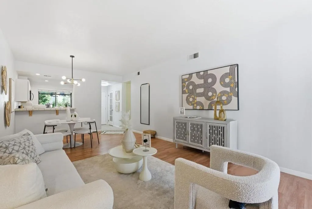 Feels like a single-family home!!! Experience the perfect blend convenience and resort-style tranquility in this stunning 2B2B ground-floor condo located in the gated Hampton Place community in central Santa Clara. This unique home welcomes you with an open-concept floor plan centered around a bright living area with a cozy wood-burning fireplace and large sliding glass doors that lead to an expansive private backyard, where mature greenery and vibrant plantings create a natural canopy of privacy and peace. The functional kitchen, complete with a garden window and breakfast bar, flows seamlessly into the dining space, while the primary suite offers a peaceful sanctuary with an en-suite bath and ample closet space. Modern essentials like in-unit laundry, double-pane windows, and an assigned covered carport just steps away ensure effortless living. Ideally situated within walking distance of Santa Clara Central Park and the International Swim Center, and just minutes from Apple Park, NVIDIA, and the premier shopping at Santana Row, this home offers an unbeatable lifestyle in the heart of Silicon Valley.