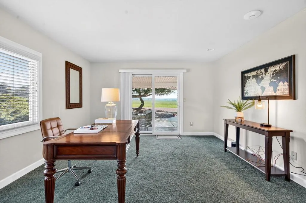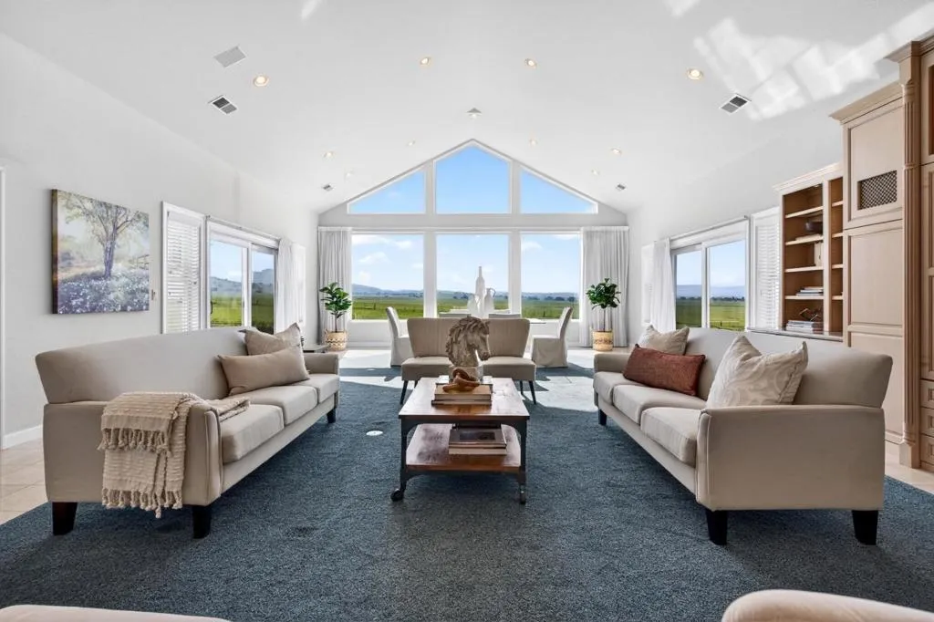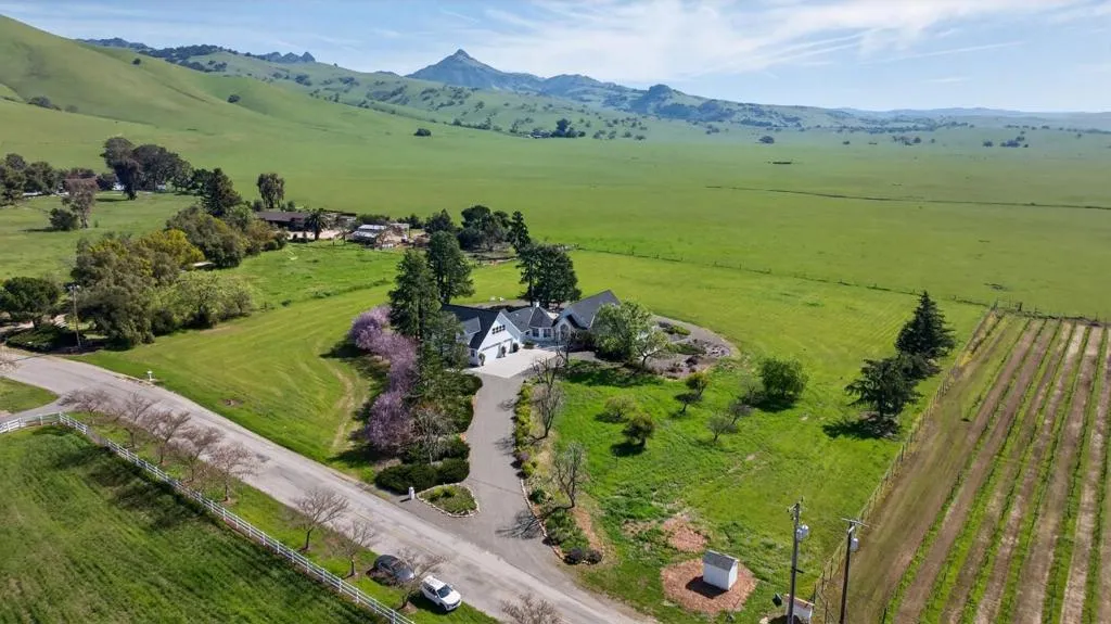 A Private Estate Framed by Foothill Views set against the backdrop of open ranch land, this North County estate offers the rare combination of scale, privacy, and flexibility across five usable acres. Multigenerational living no problem! The residence was remodeled and expanded in 2005 spans approximately 4,500 square feet with six bedrooms and five and one-half baths, including multiple primary suites. Expansive living spaces capture the surrounding landscape through walls of windows. A fireplace-warmed family room flows from the kitchen, while formal living and dining spaces open to the outdoors. A library nook offers quiet retreat. The large kitchen includes double ovens, large cooktop, built in microwave, expansive island with seating, extra storage, built in refrigerator, and lots of cabinets! Off the kitchen is a great breakfast nook. The attached guest wing, complete with private entrance and full bath, provides separation without disconnection. Outdoors, you will appreciate the 9 fruit trees (apple, lemon, 2 plum, apricot, two types of oranges.) If you want horses, a shop or a larger orchard, this is the perfect place for you. Owned solar supports all-electric living. A rare opportunity to secure privacy, views, and lifestyle flexibility in North County. #ruralliving