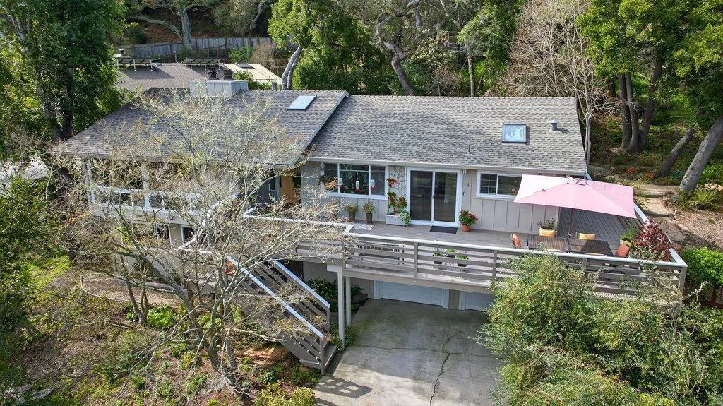 This expansive 3,335 sqft residence offers 6 bedrooms, 3 bathrooms, and an oversized 2-car garage, all set on a sunny 28,270 sqft lot surrounded by privacy and natural beauty. Designed for both comfort and retreat, the home invites you to discover your own Zen sanctuary. Relax on the large sun-drenched decks or enjoy the peaceful wooded areas throughout the property. The setting feels secluded and restorative, yet conveniently close to everything. The spacious primary suite is a true escape, featuring a private sitting area with tranquil backyard views. The en-suite bath showcases natural stone finishes, creating a spa-like atmosphere perfect for soaking in the tub or refreshing in the separate shower. With two separate entrances and excellent separation of space, this property offers flexible dual-living potential. Upstairs features the main living area with 3 bedrooms, 2 bathrooms, kitchen, dining room, and a light-filled living room anchored by a wood-burning fireplace. Downstairs includes 3 additional bedrooms, 1 bathroom, a library, and a huge family room with a wood-burning stove insert, ideal for extended family, guests, or multi-generational living. Ideally located just minutes from Downtown Scotts Valley, award-winning schools, and local parks.