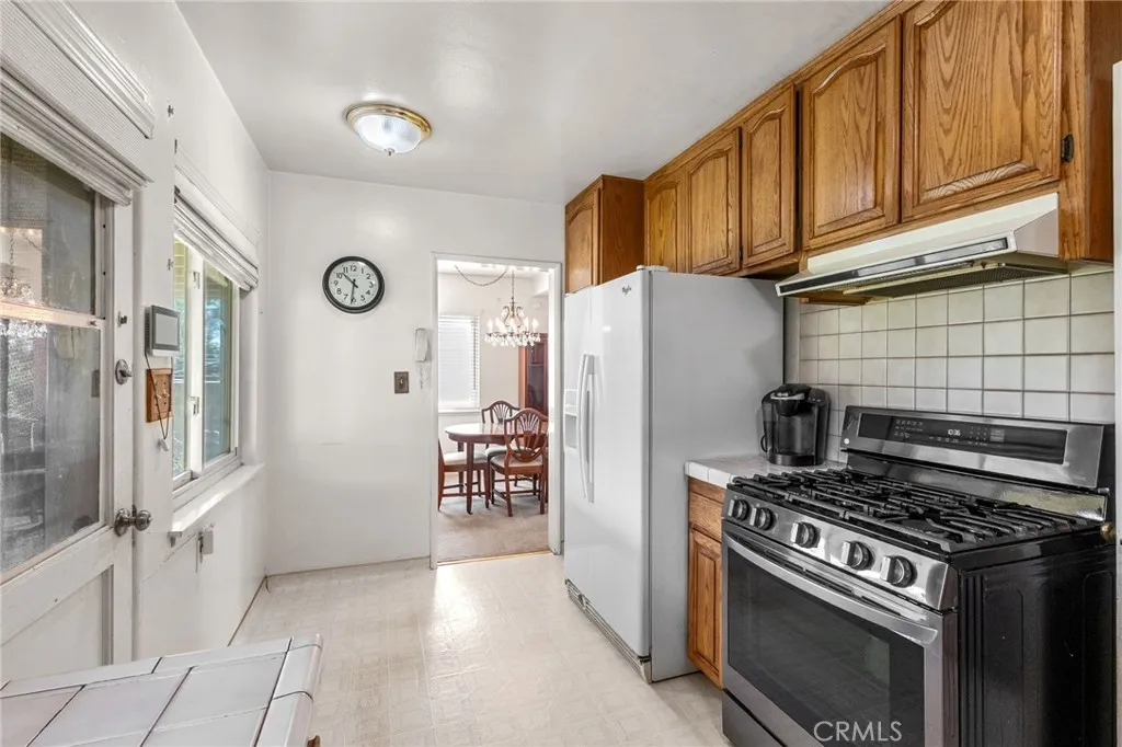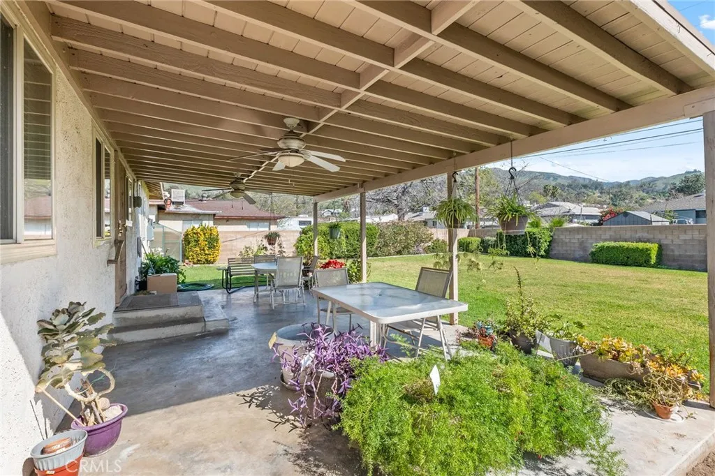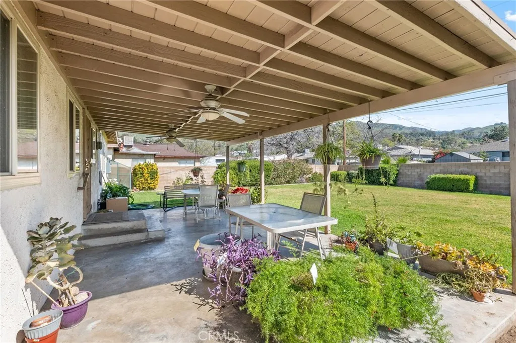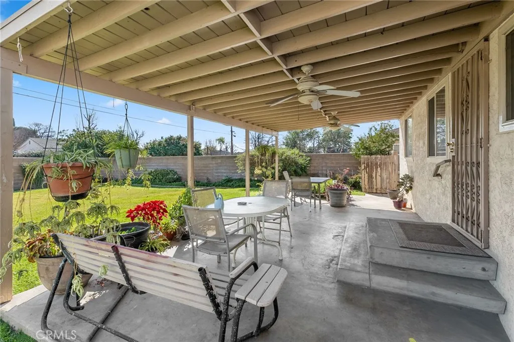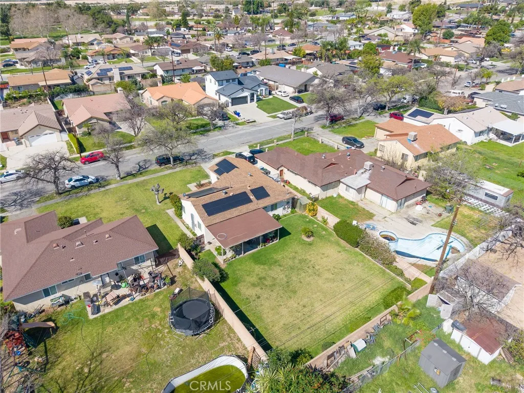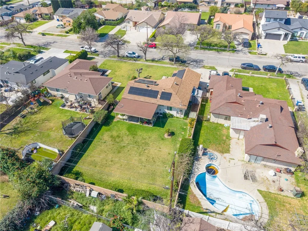 Welcome to this well-maintained 3-bedroom, 1-bath home in San Bernardino offering inviting curb appeal and thoughtful upgrades throughout. A spacious cement driveway leads to the 2-car garage, with a clean cement walkway guiding you to the front entrance. The landscaped front yard features a lush lawn, and neatly trimmed hedges, creating a warm and welcoming first impression. The white stucco exterior is complemented by a reddish-brown shingle roof and solar panels for added energy efficiency. Inside, you’ll find comfortable carpet flooring throughout the living and dining areas, including newer carpet in the living room, approximately 6 months old. The kitchen features rich brown cabinetry, with white tile countertops and backsplash, and comes equipped with a stove that is approximately 3 years old. All three bedrooms are well-sized and conveniently located near the full bathroom, offering practical functionality for families, guests, or a home office setup. Major system upgrades provide peace of mind: the HVAC condenser was replaced about 2 years ago, the water heater is brand new, and the electrical panel has been upgraded to 220V, with new electrical wiring run throughout the home. Additionally, the sewer line in the yard has been redone—an important improvement that adds long-term value. Step outside to a spacious backyard designed for relaxing or entertaining, featuring a large covered patio over a concrete slab and a beautifully landscaped lawn. Cement block walls offer privacy, accented by trimmed hedges and mature shrubbery for a clean, finished look. With solid upgrades, energy efficiency, and inviting outdoor space, this home is ready for its next owner to make it their own.