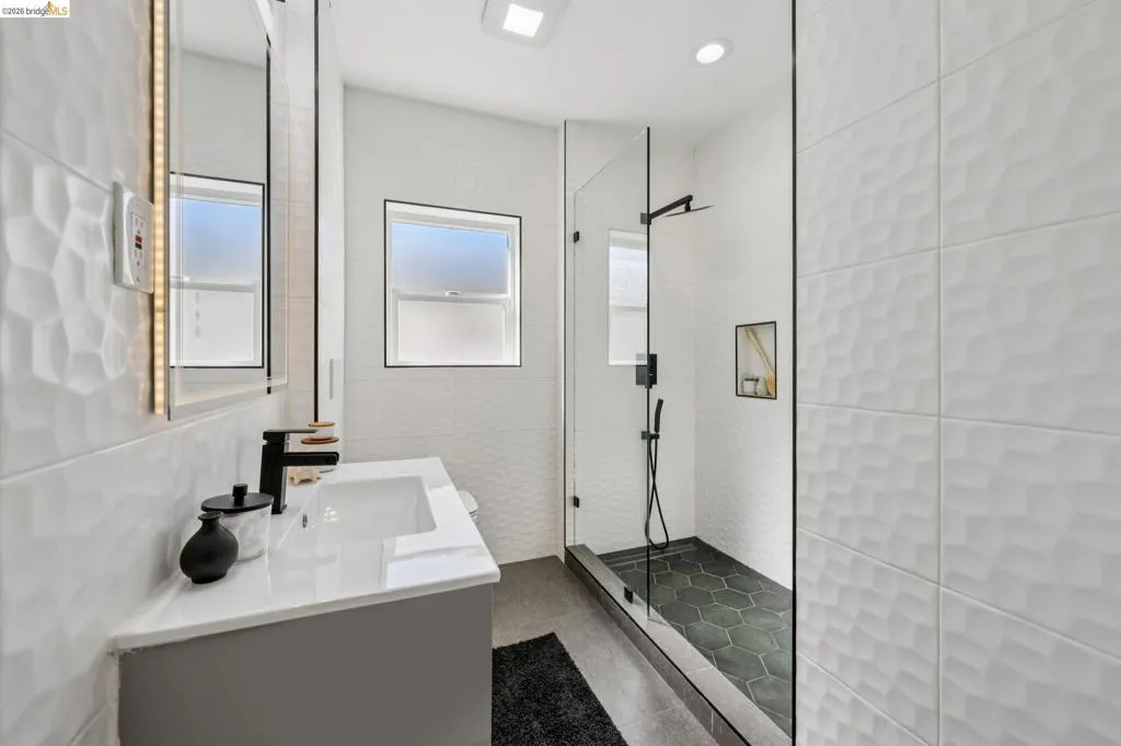 Experience the perfect blend of modern updates and functional design in this sun-drenched South Berkeley home. The open-concept main level features a seamless flow between the living and dining areas and a beautifully updated kitchen, which shines with stone countertops, stainless steel appliances, and island seating. This residence offers three spacious bedrooms and two full bathrooms, including a primary suite with an en-suite bath and modern walk-in shower. A versatile and spacious lower-level family room provides excellent indoor-outdoor connectivity, leading directly to a large, private backyard oasis. This landscaped retreat features mature fruit trees, raised planter beds and ample space for both lounging and al fresco dining. Significant system upgrades offer peace of mind, including dual-pane windows, LED lighting, central heating, and a compliant sewer lateral. An attached garage provides convenience, and the large backyard offers intriguing development potential (buyer to verify). Located less than a half mile to Ashby BART and moments away from local cafes, parks, and amenities, this move-in-ready gem represents easy Berkeley living. 89 Walkscore and 97 Bikescore!