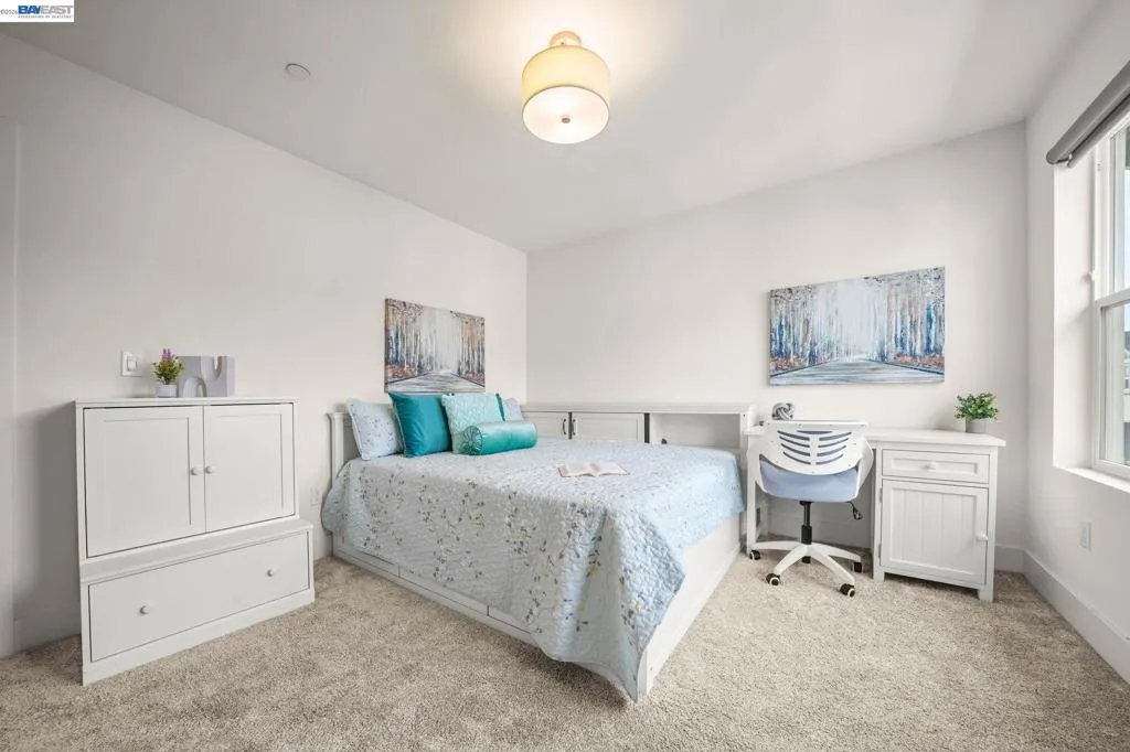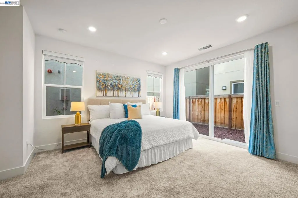 Welcome to this stunning 4-bedroom, 3.5-bathroom home in the desirable Bridgeway community of Newark, offering 2,370 sq ft of beautifully designed living space with modern finishes, a private California Room, and a cozy backyard. Residents enjoy access to resort-style amenities including a pool, clubhouse, parks, playgrounds, walking trails, and a dog park. Upon entry, you’re greeted by a charming seating nook and a private guest bedroom with an ensuite bath, plus backyard access and entry to the two-car garage. The light-filled second level features high ceilings, abundant windows, recessed lighting, and new luxury vinyl flooring, along with a spacious living room, dining area, half bath, and a beautifully appointed kitchen with stone countertops, full backsplash, stainless steel appliances, gas range with professional hood, large island with seating for four, pantry, and adjacent dining area. The California Room creates seamless indoor-outdoor living. The third level offers a primary suite with custom closet built-ins and dual-sink vanity, two secondary bedrooms, hall bath, built-in desk area, and laundry room. Ideally located near Hwy 880, Hwy 84/Dumbarton Bridge, BART, major employers, and shopping.