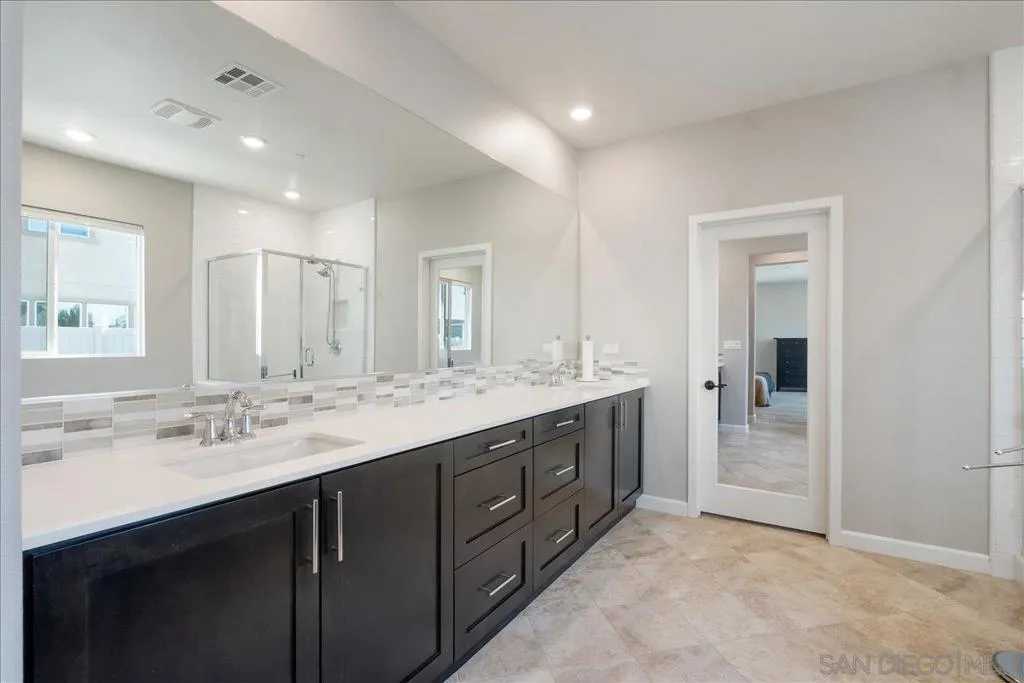 Welcome to this stunning, nearly new construction home - just minutes from the freeways and beaches. High-end finishes, blending modern aesthetics with a seamless open floor plan. Anchored by stunning new tile flooring that flows throughout the main level, the kitchen, dining, and living areas merge effortlessly making this home an absolute dream. Key Features & Upgrades: Fresh, beautiful upgrades and designer touches elevate every corner of the home. Indoor-Outdoor Flow: A large slider opens to a private patio, perfectly positioned to catch the refreshing Vista coastal breeze. Versatile Layout: Features a convenient downstairs bedroom and full bathroom, plus a separate dedicated space ideal for a home office or private workout room. Upper-Level Luxury: A lovely staircase leads to a versatile playroom loft. The oversized primary suite is a quiet retreat, thoughtfully situated away from the other spacious bedrooms for maximum privacy. Natural Light: Large windows ensure plenty of California sunshine radiates through the home all day long. Enjoy the best of North County living with premium community amenities and a central location: Amenities: On-site BBQ areas and a playground for weekend fun. Convenience: Minutes away from local boutiques, trendy dining, and easy access to the 78 Freeway. Other Notables: Oversized garage with plenty of room for three large vehicles and ample storage. Smart Home features, tankless hot water heater, and solar!