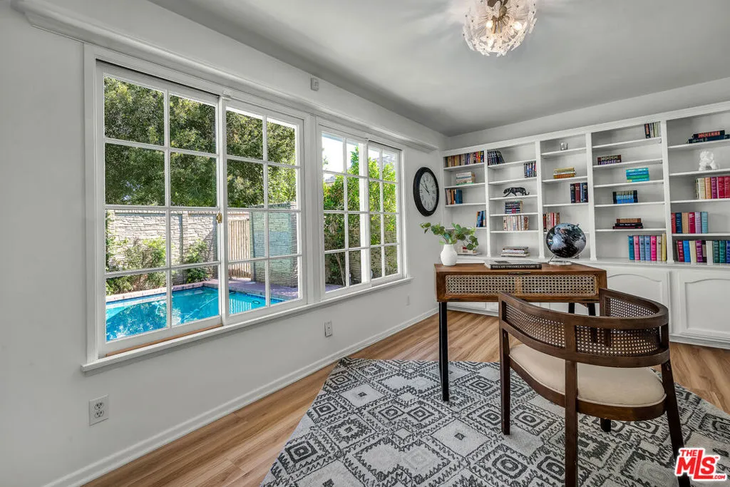This private and secure compound features a beautifully maintained, freshly painted, bright, warm, and stylish 3-bed, 2-bath home with a den that can serve as a fourth bedroom or a dining room, just minutes from public transit, freeways, schools, shopping, dining, and entertainment. The area is also seeing redevelopment, offering future upside potential. The lushly landscaped grounds feature an entertainer's yard with a pool and spa, along with expansive open space perfect for kids to safely run around, host large gatherings, or simply enjoy life. Features include newer windows, a 2-year-old (owner-owned) solar system, updated air conditioning with a NEST thermostat, tankless water heater, custom lighting, and a remodeled primary ensuite bathroom. The finished 2-car garage offers a separate entrance, its own A/C system, abundant storage, and a Tesla charger. This versatile space could serve as a home office, bonus room, or possibly be converted into an ADU. This home is a rare find in today's market and won't be available for long.