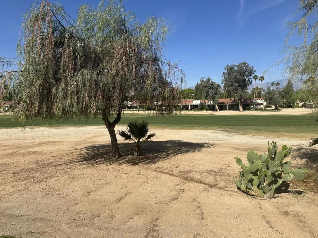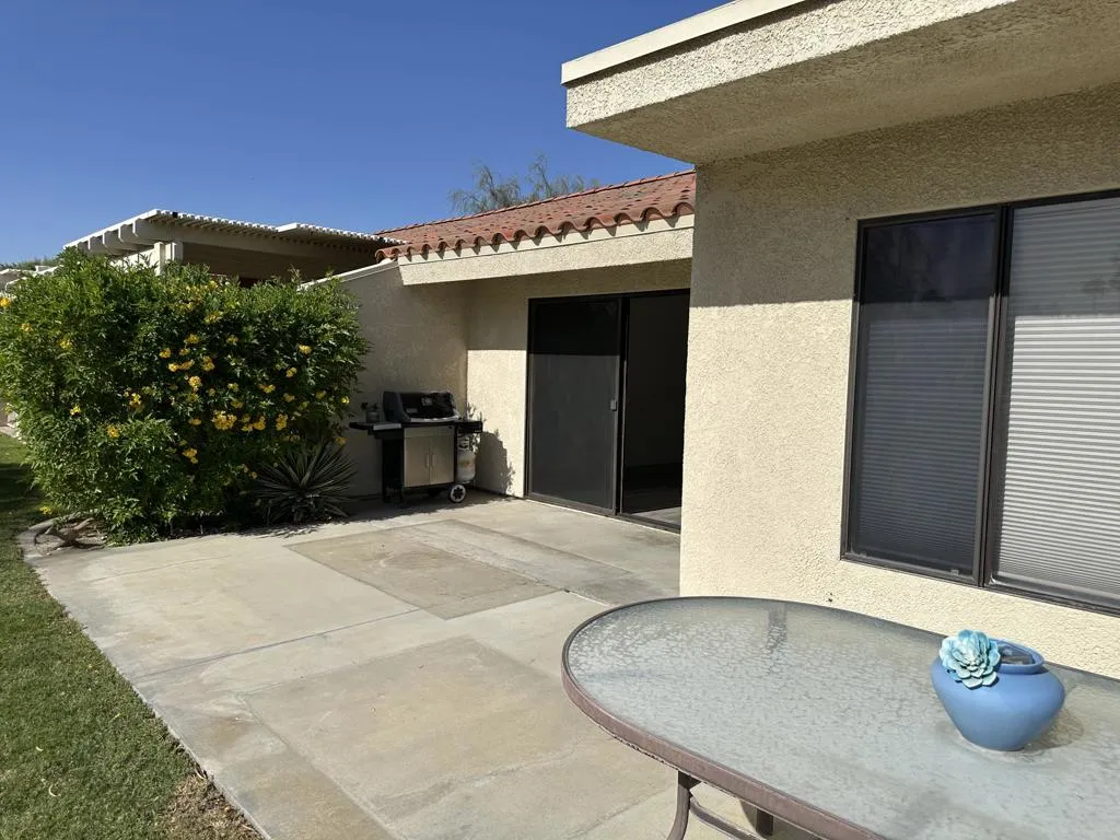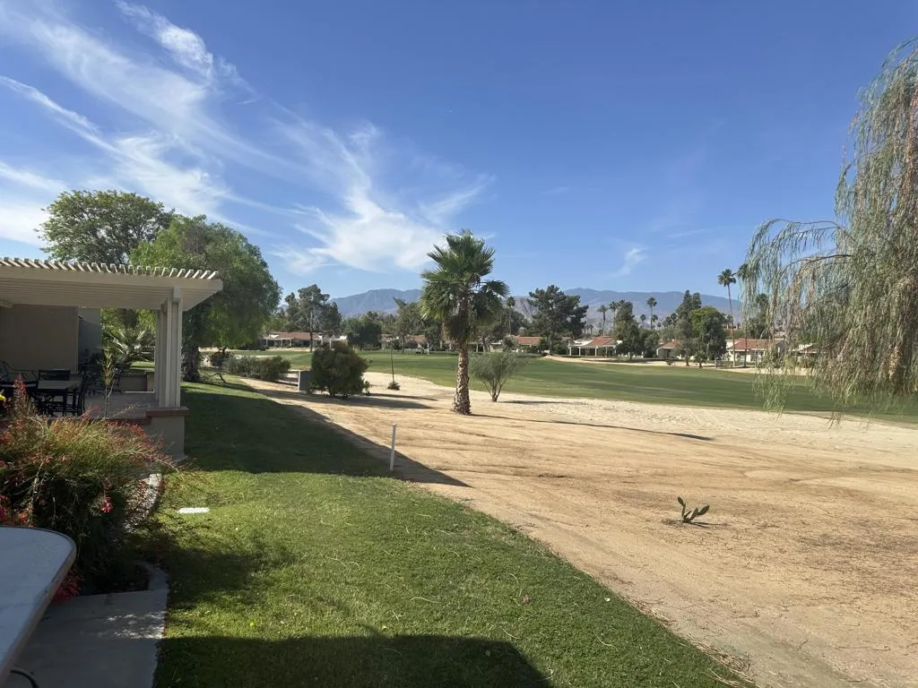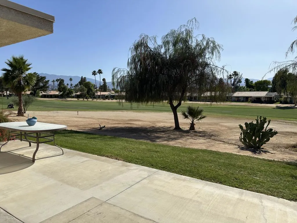 This beautifully maintained 2-bedroom, 2-bath condo is ideally situated on the 11th fairway, offering stunning mountain views and a peaceful golf course setting.Enjoy outdoor living at its finest on the spacious private patio, complete with ample seating and plenty of room for barbecuing--perfect for relaxing or entertaining guests.Inside, the open floor plan seamlessly connects the living area to the kitchen, creating a bright and welcoming space ideal for gatherings. The kitchen and living room feature a convenient counter bar with additional seating, enhancing the home's entertaining appeal. Both bedrooms are generously sized, offering comfort and privacy for residents and guests alike. A private garage adds convenience and secure parking. This property is being newly painted with all new blinds and is move in ready.Located within Palm Desert Resort, residents enjoy access to exceptional amenities including an 18-hole golf course, 20 pools and spas, tennis facilities, and a full-service clubhouse featuring a lounge, dining room, pro shop, and picturesque lake views.This is truly a must-see property.
