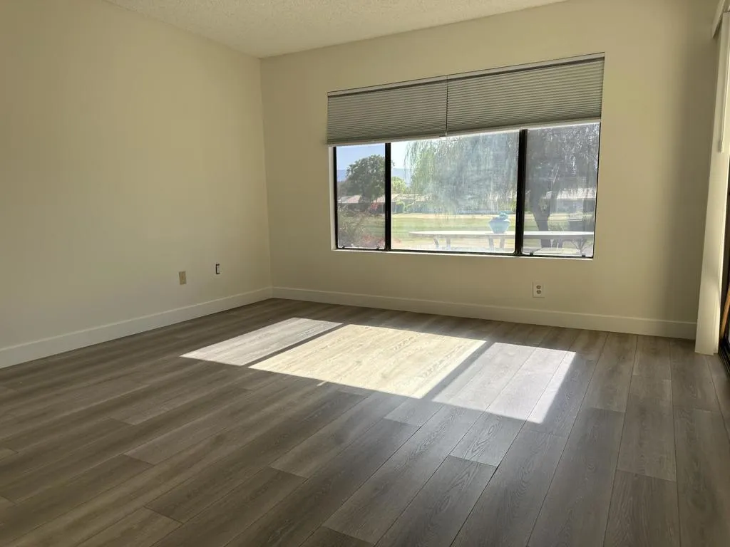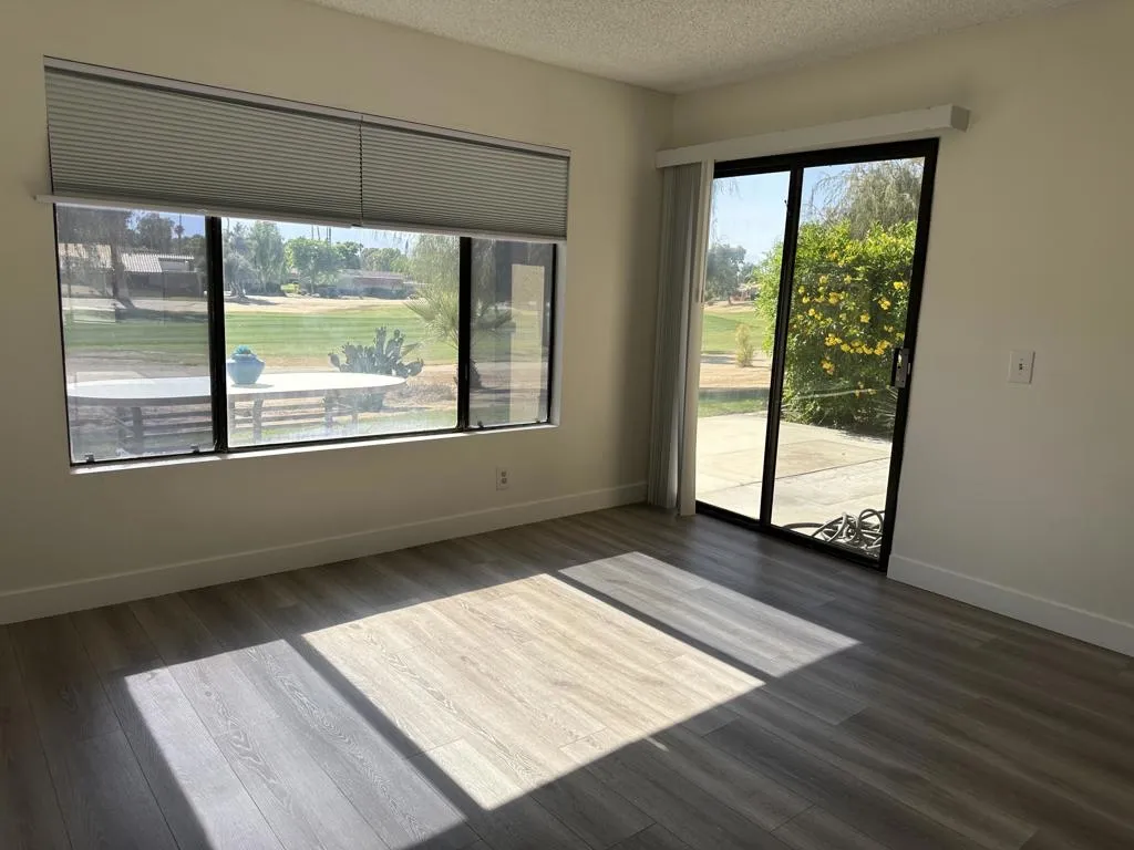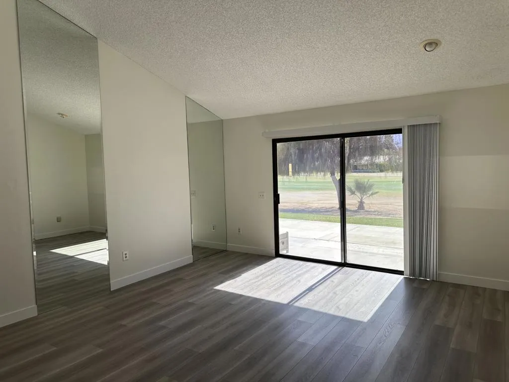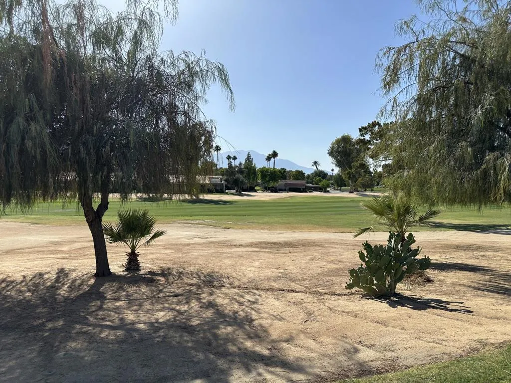This beautifully maintained 2-bedroom, 2-bath condo is ideally situated on the 11th fairway, offering stunning mountain views and a peaceful golf course setting.Enjoy outdoor living at its finest on the spacious private patio, complete with ample seating and plenty of room for barbecuing--perfect for relaxing or entertaining guests.Inside, the open floor plan seamlessly connects the living area to the kitchen, creating a bright and welcoming space ideal for gatherings. The kitchen and living room feature a convenient counter bar with additional seating, enhancing the home's entertaining appeal. Both bedrooms are generously sized, offering comfort and privacy for residents and guests alike. A private garage adds convenience and secure parking. This property is being newly painted with all new blinds and is move in ready.Located within Palm Desert Resort, residents enjoy access to exceptional amenities including an 18-hole golf course, 20 pools and spas, tennis facilities, and a full-service clubhouse featuring a lounge, dining room, pro shop, and picturesque lake views.This is truly a must-see property.
