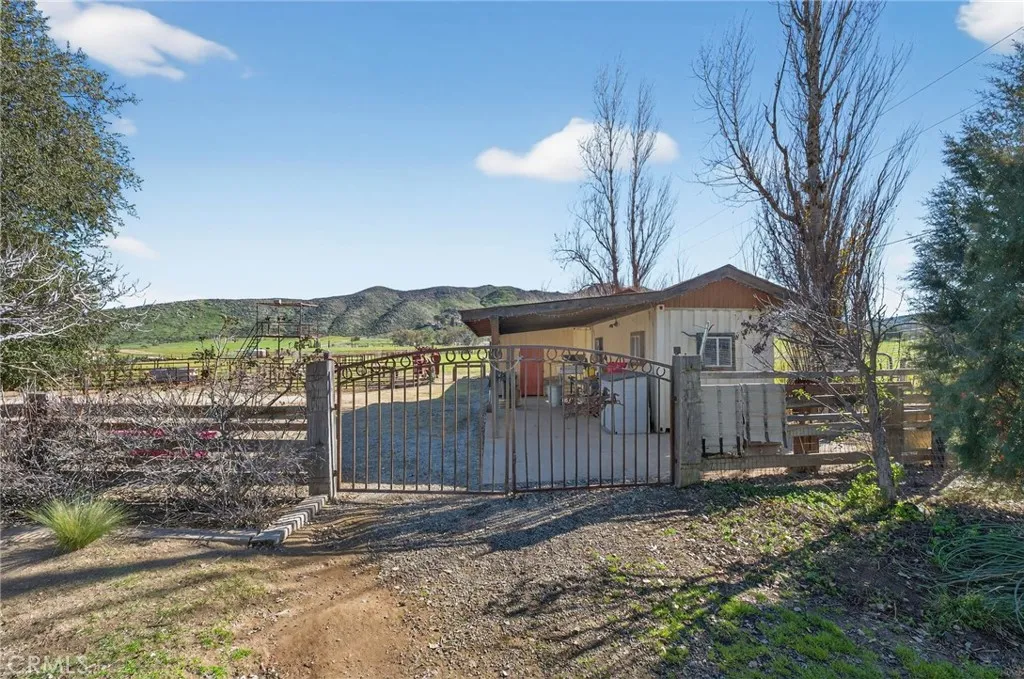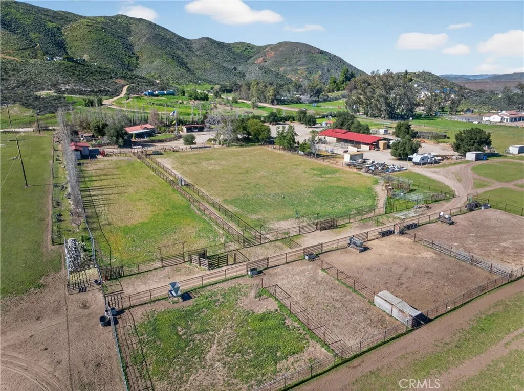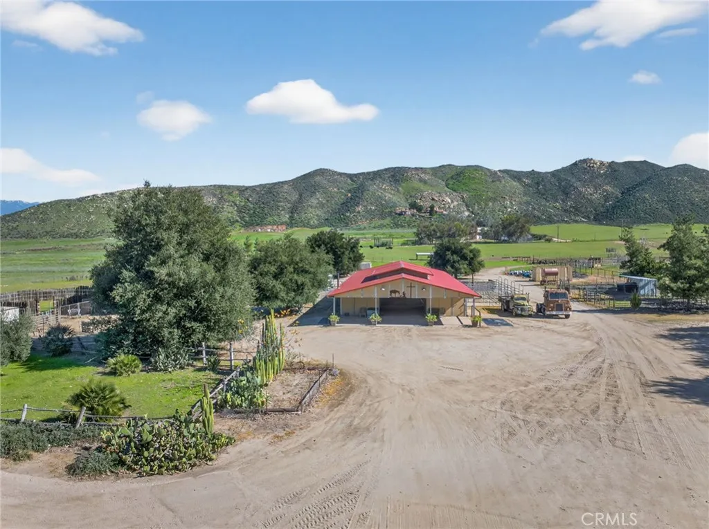 Welcome to the renowned Zak Family Ranch (ZZ Ranch) in The Good Heart Valley in Pixley Canyon, located at the Southern Hemet / North Temecula border. Previously the hosting property to the Junior Rodeo and High School Rodeo events, this unique and functional venue/working-ranch/rodeo property sits at 19 acres of flat and usable ranching acreage, and is now being made available by the founding family after 25 years of real rodeoing history. The property includes a 1,768 sf 3 bedroom 2 bathroom single story ranch home overlooking its own 19 acres, surrounding valley, hills and distant mountains. In the center of the property is a roughly 5,000sf (110’x45’) MD Barnmaster barn with a 400sf bunkhouse including shower-bath-sink-toilet and pot belly stove, a 400sf tack-room with 240a dryer, 8 full stalls, wash-rack, hay storage, multiple 240a connections, & 2 RV hookups. Additional structures on site include a 4 space carport, shop with 240a connect, commercial food-grade cold storage brewery, chicken coop, garden greenhouse, and a custom pizza oven. The rodeo features of this property include 2 PRCA regulation size calf and roping arenas, WW Manufacturing roping chutes, a bucking chute, announcer stand platform, audience bleacher stands, and a round pen. The additional working-ranch features include a pig barn with stall, 5 turnout pastures with covers, 6 cattle pens with shelters, including the back 9 acre pasture parcel making up the total of the 19 acres. On property there are roughly 2/3 acre of vineyards (550+ vines) with additional citrus, peach, pear and apricot trees. Water is readily available by way of 3 wells, including bibs out to every corner of the property and within, and power with similar availability including a generator back-up connection. This is a one-of-a-kind ranch, capable of many purposes that further offers the possibilities of expansion in a multitude of different directions & uses.