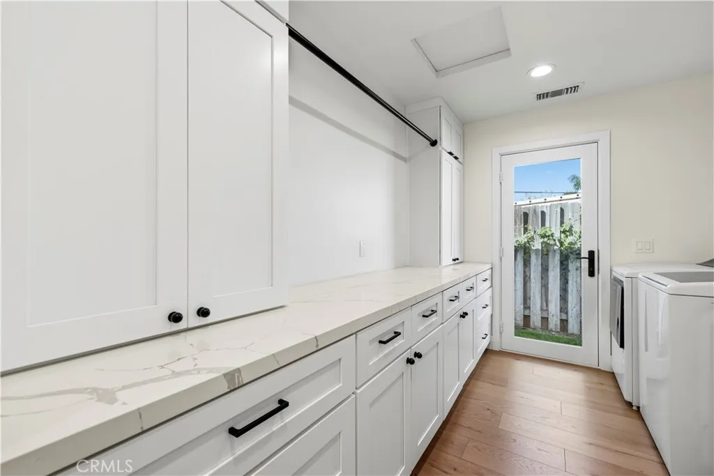 Welcome to one of the most charming streets in Santa Clarita, where the homes have character and this one clearly decided to show off. Set on a massive lot with RV parking large enough for a 40-foot RV or trailer, this property also features a nearly 1,000 sq ft permitted addition completed by a licensed contractor, creating a layout that now lives like dual primary suites. One of those primaries even offers its own separate access, opening the door for a potential income-producing setup, guest quarters, or multigenerational living. And the Santa Clarita jackpot… NO HOA and NO Mello Roos. Inside, the home has been completely reimagined with a design that feels like California Rancho meets Mid-Century cool. The massive kitchen opens directly to the living space and is anchored by white oak Italian flooring, a real walnut island, and stunning quartz countertops. The Sub-Zero refrigerator is custom paneled in wood, because even the fridge in this house understood the assignment. The home also features dual sliding doors that open wide to the backyard for true indoor-outdoor living, creating a seamless flow perfect for entertaining and enjoying the mountain views. The expanded primary suite is a retreat of its own, featuring vaulted ceilings, a large walk-in closet, and a spa-like bathroom with soaking tub and tiled shower. The layout allows excellent separation and privacy between the suites. The laundry room was added during the expansion and includes a large pantry, abundant storage, custom wood cabinetry, and designer paint. Major upgrades include all new electrical with upgraded panel and room for 220V, a new sewer line for the addition running to the street, wired indoor and outdoor speakers, and hardwired WiFi for TVs. The roof is only two years old, and the kitchen ceiling has been raised and vaulted, bringing incredible light and volume into the main living space. Additional details include reverse osmosis filtration through an antique lacquered brass faucet, a powered garage with electric door, breezeway access, and outdoor storage. The original primary suite also features an updated shower. The oversized lot offers endless possibilities. Outdoor water and gas lines are already in place for a future outdoor shower, fire pit, or entertaining space. Add a pool, host unforgettable gatherings, park the toys, or simply relax and enjoy the mountain views. Homes like this aren’t just updated… they’re completely reimagined.