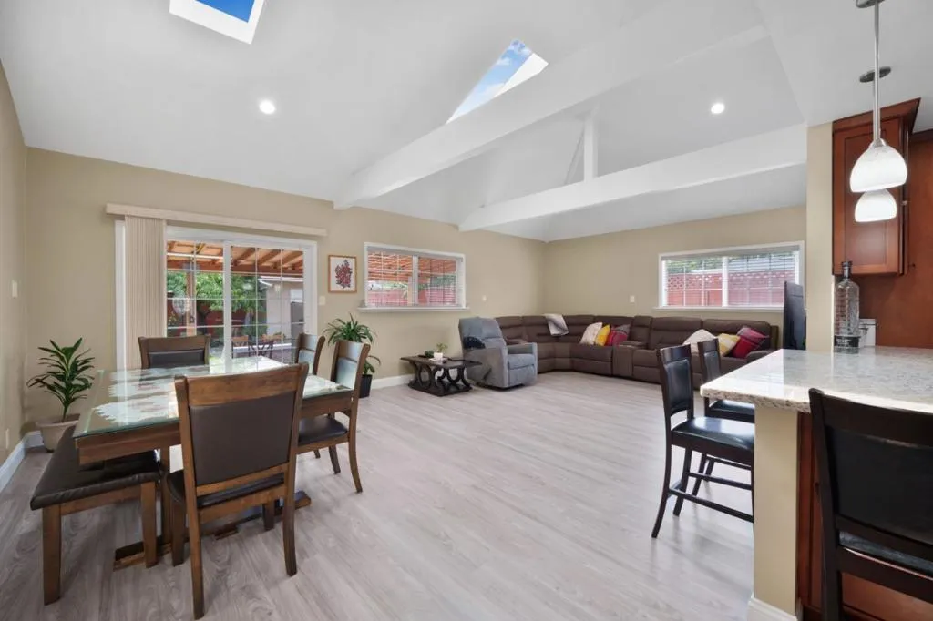 BIG $ PRICE $ IMPROVEMENT. Rare single-story opportunity in Redwood City, a spacious 2025 sq/ft home with a 5,880 sq/ft lot and thoughtfully designed home offering high ceilings, natural light, and a functional open layout ideal for everyday living and entertaining. The primary suite serves as a private retreat featuring dual sinks, soaking tub and a separate glass door shower. The kitchen is the heart of the home with granite counter tops, abundant cabinetry, GE Profile 5-burner cook top, built-in oven and microwave, dishwasher, and double-door refrigerator. It flows seamlessly into the dining area. Enjoy your fourth bedroom as an office or extra room for family visitors. An extra 5th prememium room for the kids to play their video games and be loud at the converted garage. Indoor laundry room, recessed lighting, ceiling fans, dual-pane windows, central heating and A/C, water softener, Ring doorbell. The backyard offers a good sized storage shed and a large covered patio to relax or entertain a great extension of family members. Conveniently located near parks, face book building, walking trails, and local schools, offering comfort, space, and single-level convenience in a quiet residential setting.