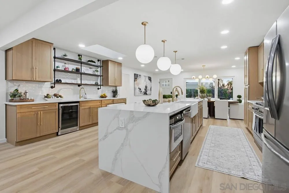 Located in the exclusive southwest Carlsbad neighborhood of greater Carlsbad Lagoon area, 3880 Adams Street, Carlsbad, CA 92008, priced at $1,795,000, is a stunning, fully renovated modern home that blends contemporary luxury with prime coastal convenience. Conveniently positioned near Tamarack Avenue and Adams Street just east of the 5, this 4 bed /2 bath home offers easy access to everything Carlsbad has to offer—just minutes from beautiful beaches and Carlsbad Lagoon. This meticulously reimagined residence features sleek, modern design with impeccable attention to detail throughout. A standout highlight is the foldable window wall that effortlessly opens the indoor living spaces to an inviting, luxury outdoor patio—ideal for year-round entertaining, al fresco dining, or simply soaking in the California Sunset lifestyle. The heart of the home is the expansive, warm, and welcoming 12-foot quartz countertops, showcasing luxury appliances, an integrated service bar, a dedicated beverage fridge, SS main fridge, microwave built into the island makes this a classy tasteful design. The overall flow emphasizes openness, natural light, and sophisticated finishes that create a truly inviting atmosphere. This is a rare and reasonably priced home when comparing the modern finishes to the recently sold comparables in the area. Come tour this tremendous opportunity to own a turnkey, modern retreat in one of North County's most desirable areas—perfect for those seeking style, functionality, beach proximity and unbeatable location without compromise. Located in the exclusive southwest Carlsbad neighborhood of greater Carlsbad Lagoon area, 3880 Adams Street, Carlsbad, CA 92008, priced at $1,795,000, is a stunning, fully renovated modern home that blends contemporary luxury with prime coastal convenience. Conveniently positioned near Tamarack Avenue and Adams Street just east of the 5, this 4 bed /2 bath home offers easy access to everything Carlsbad has to offer—just minutes from beautiful beaches and Carlsbad Lagoon. This meticulously reimagined residence features sleek, modern design with impeccable attention to detail throughout. A standout highlight is the foldable window wall that effortlessly opens the indoor living spaces to an inviting, luxury outdoor patio—ideal for year-round entertaining, al fresco dining, or simply soaking in the California Sunset lifestyle. The heart of the home is the expansive, warm, and welcoming 12-foot quartz countertops, showcasing luxury appliances, an integrated service bar, a dedicated beverage fridge, SS main fridge, microwave built into the island makes this a classy tasteful design. The overall flow emphasizes openness, natural light, and sophisticated finishes that create a truly inviting atmosphere. This is a rare and reasonably priced home when comparing the modern finishes to the recently sold comparables in the area. Come tour this tremendous opportunity to own a turnkey, modern retreat in one of North County's most desirable areas—perfect for those seeking style, functionality, beach proximity and unbeatable location without compromise.